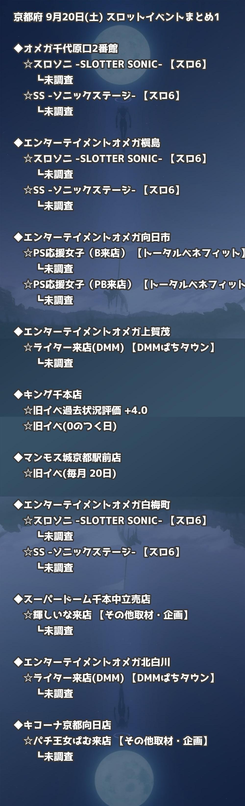 📊 京都府 9月20日(土) 勝てるパチンコ・スロット取材店舗一覧|おすすめ順