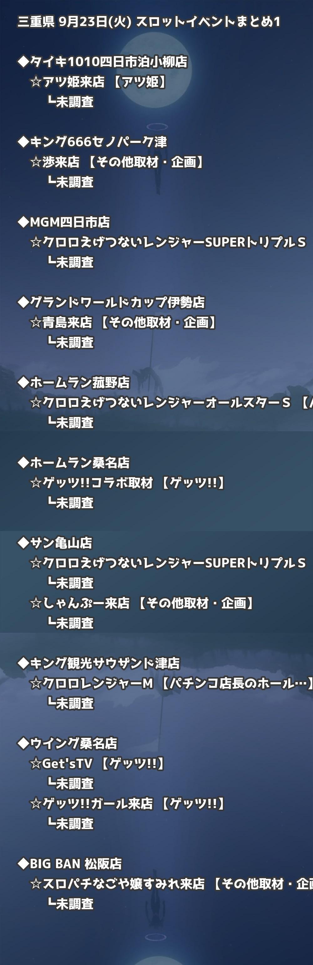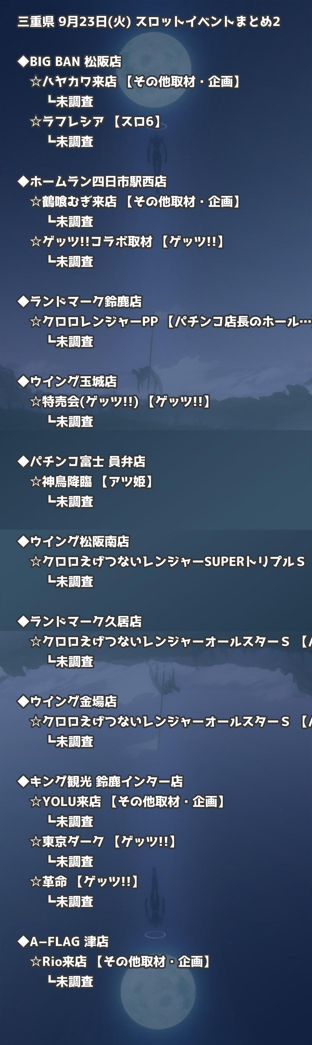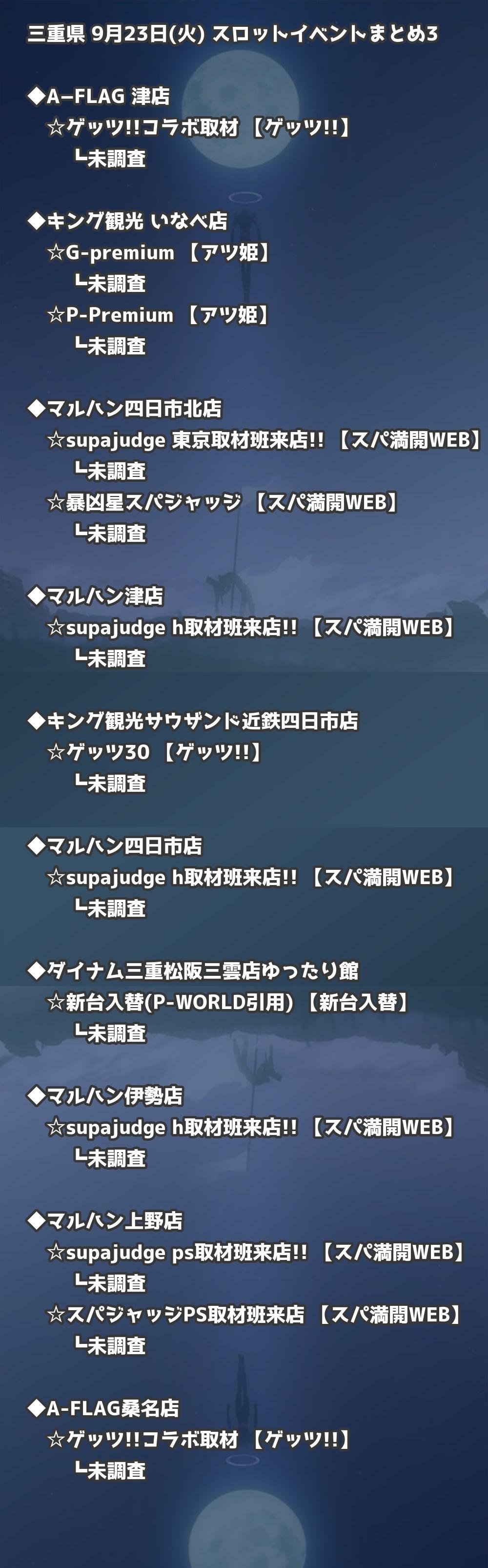 📊 三重県 9月23日(火) 勝てるパチンコ・スロット取材店舗一覧|おすすめ順