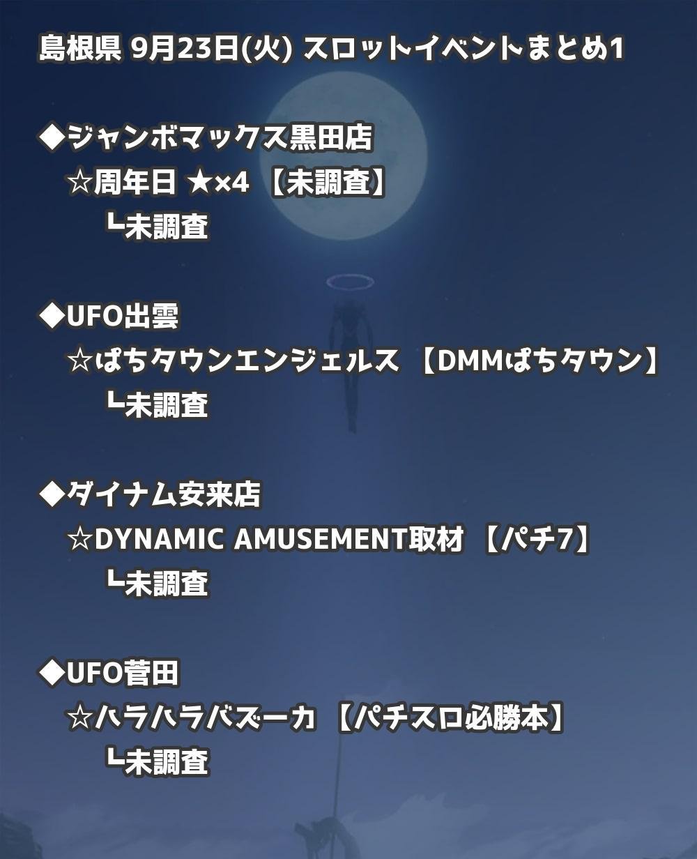 【島根県】9月23日(火) パチンコホールイベント取材まとめ記事です。