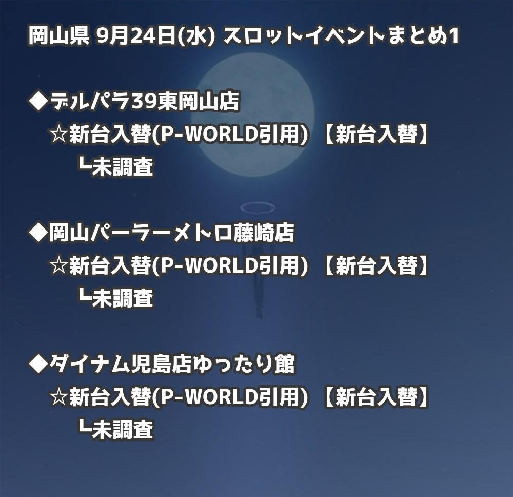 【岡山県】9月24日(水) パチンコホールイベント取材まとめ記事です。