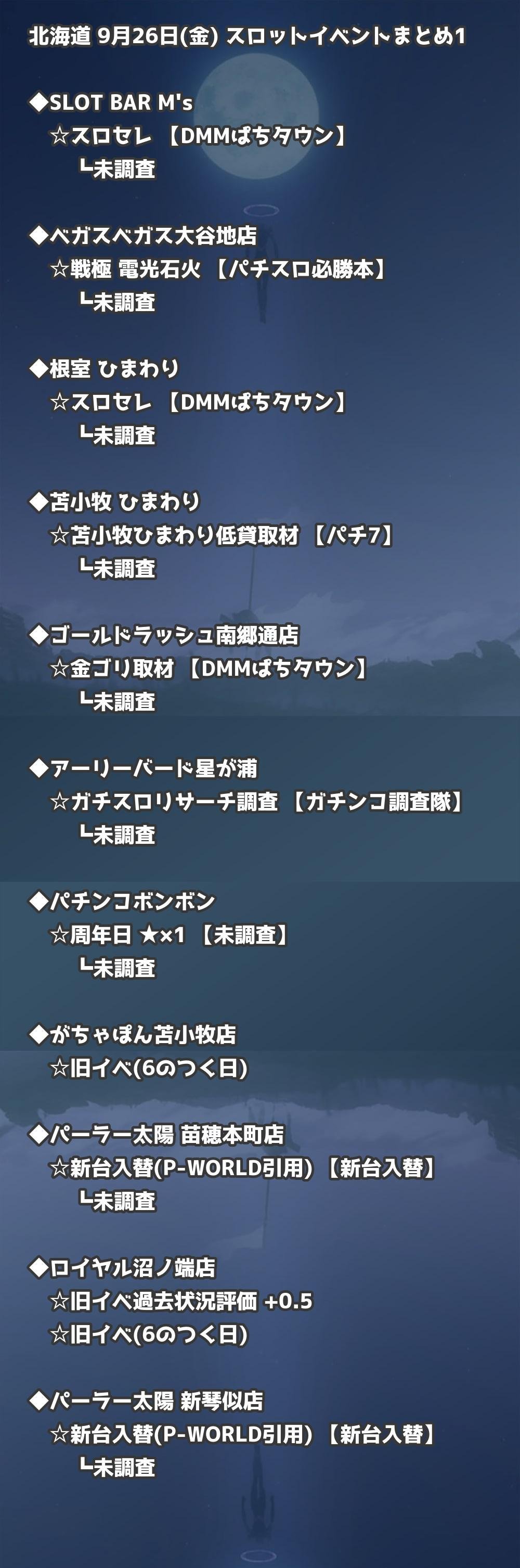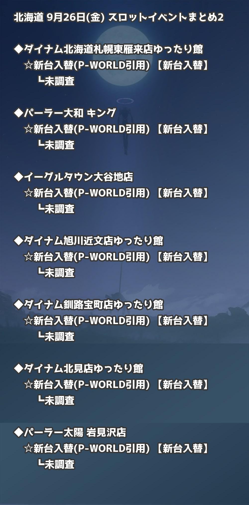 【北海道】9月26日(金) パチンコホールイベント取材まとめ記事です。