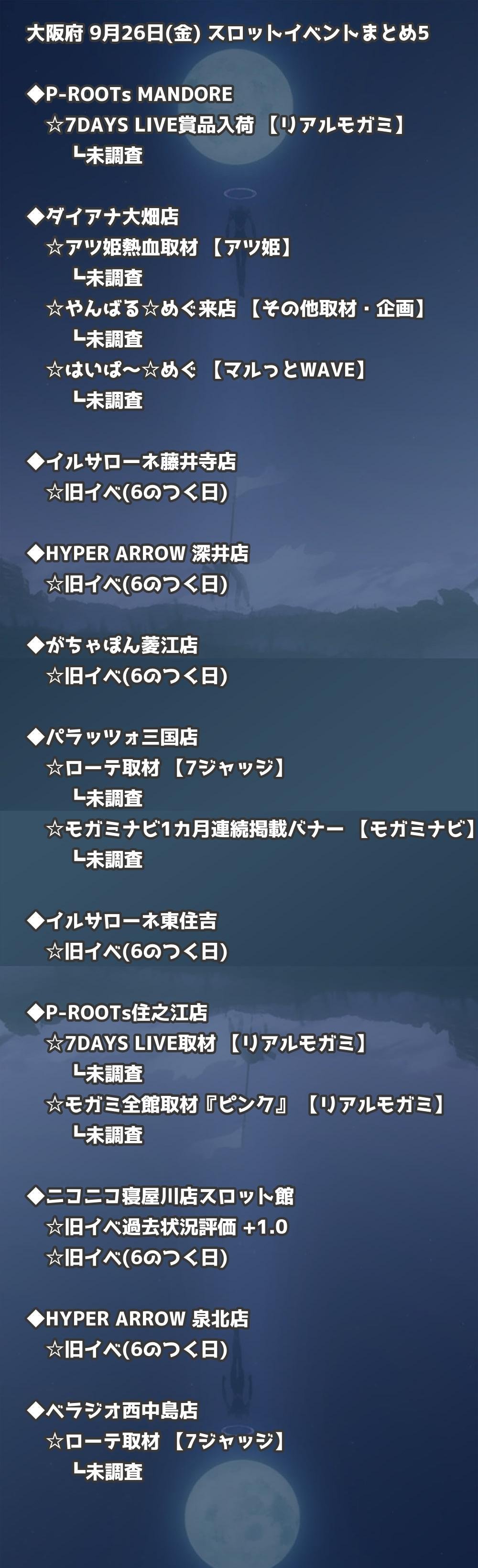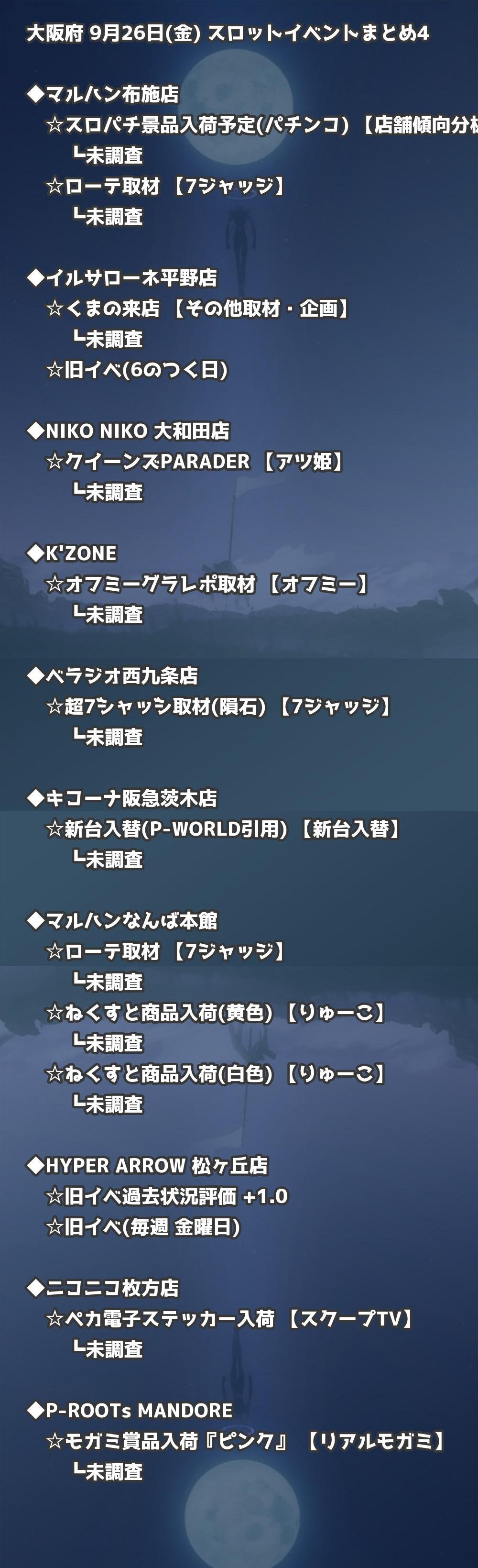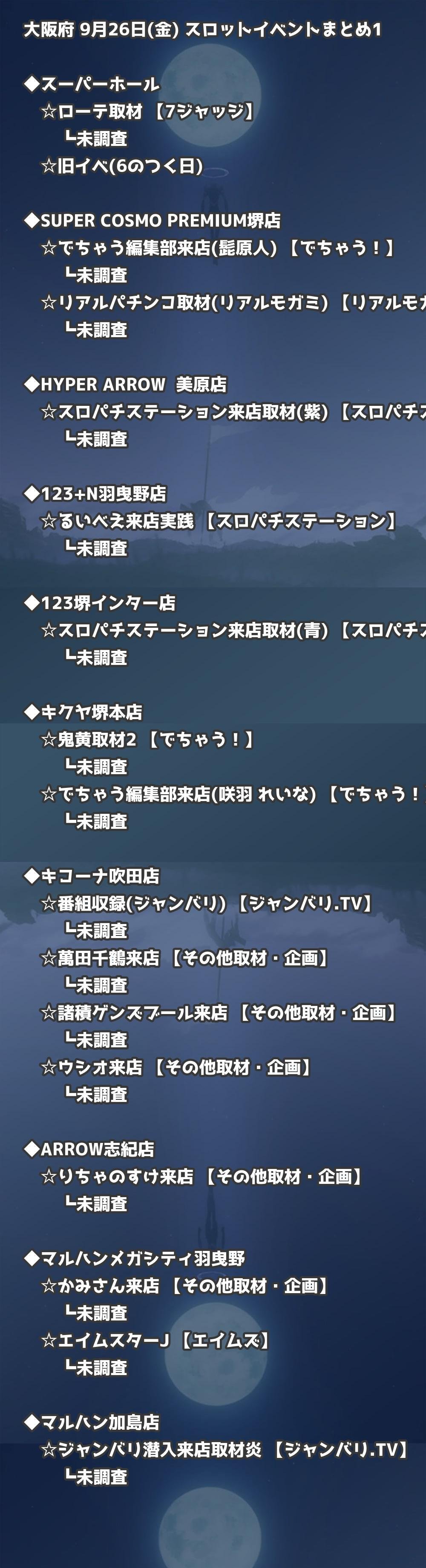 📊 大阪府 9月26日(金) 勝てるパチンコ・スロット取材店舗一覧|おすすめ順
