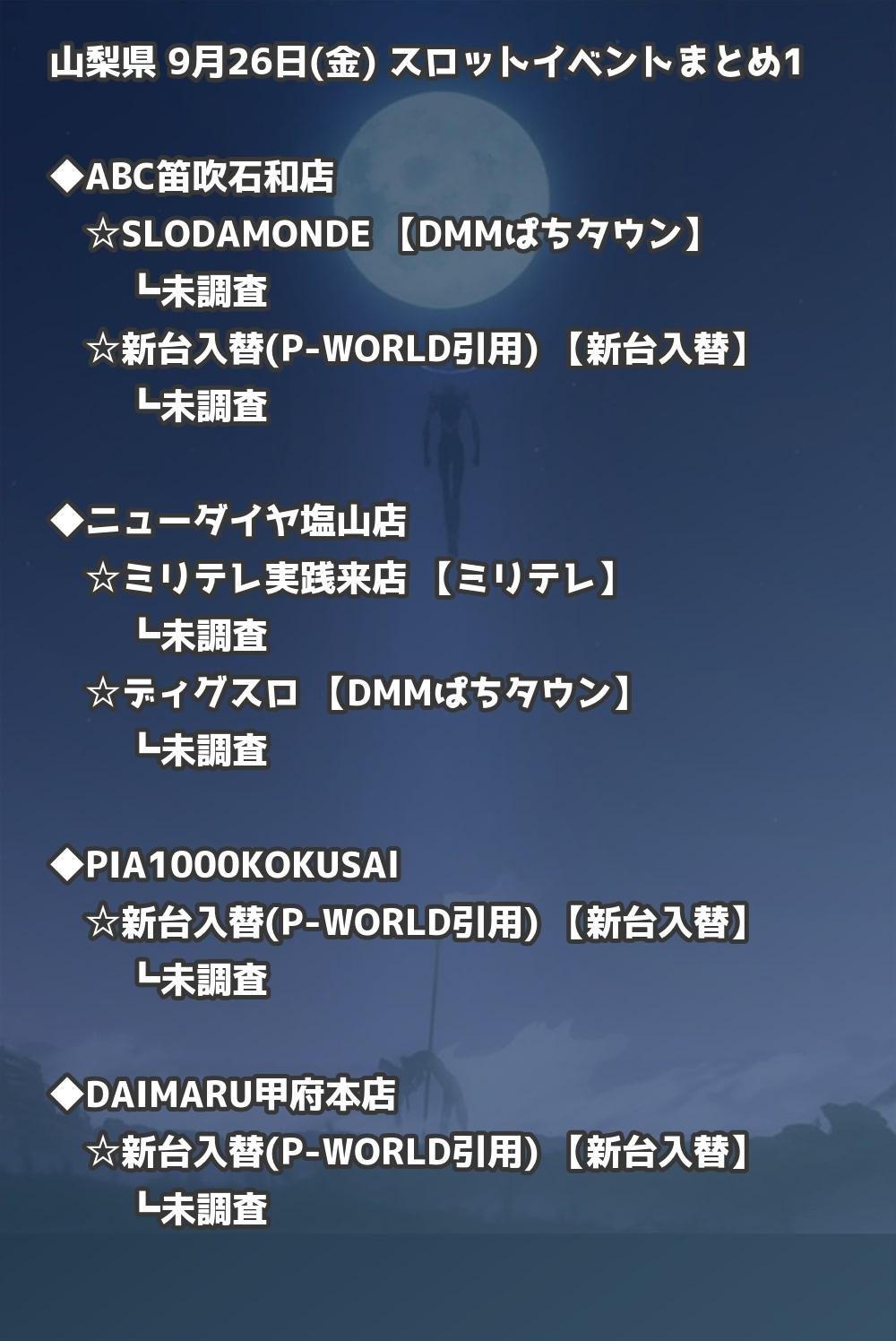 【山梨県】9月26日(金) パチンコホールイベント取材まとめ記事です。