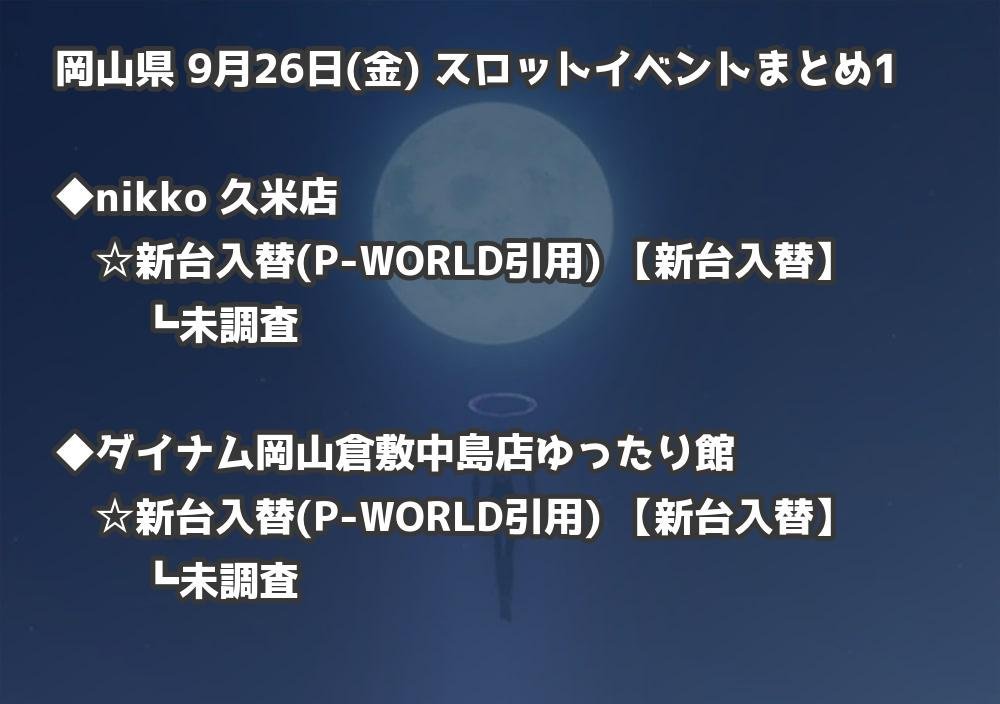 【岡山県】9月26日(金) パチンコホールイベント取材まとめ記事です。