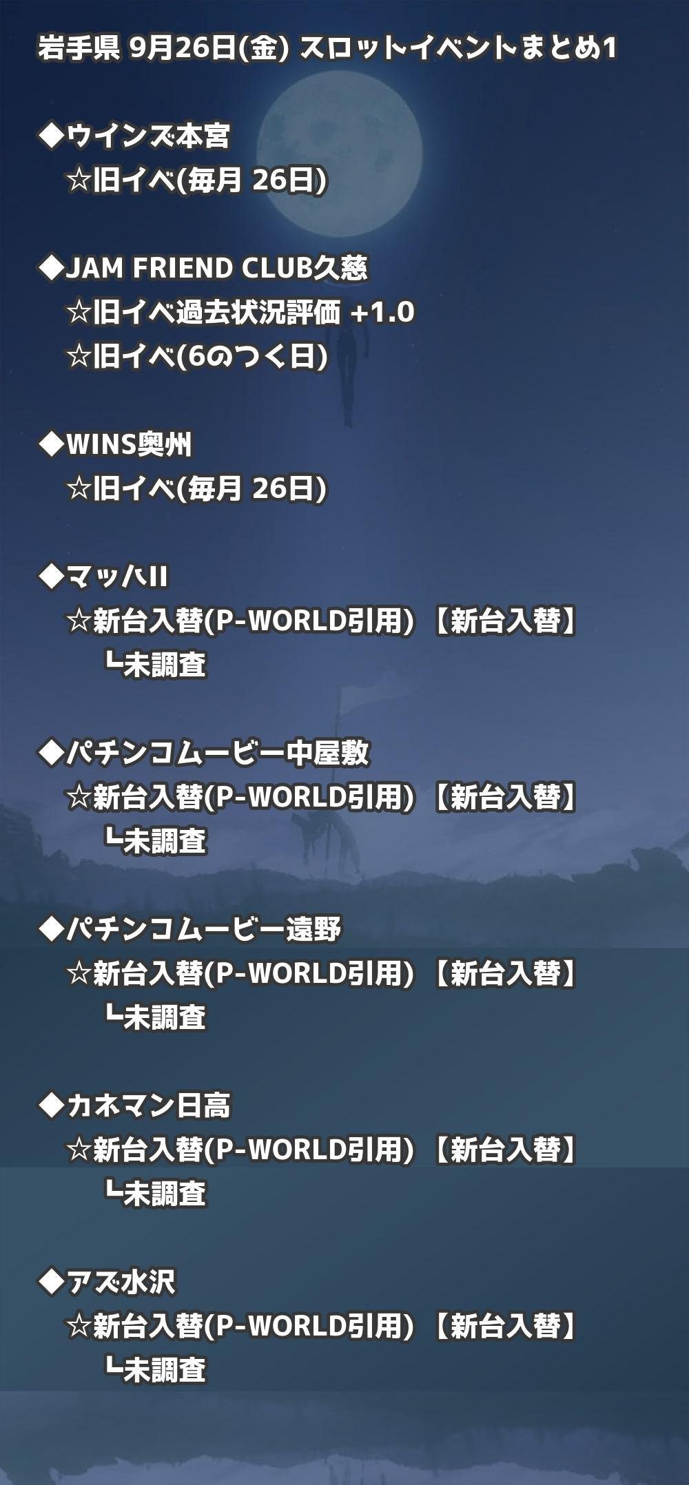 【岩手県】9月26日(金) パチンコホールイベント取材まとめ記事です。