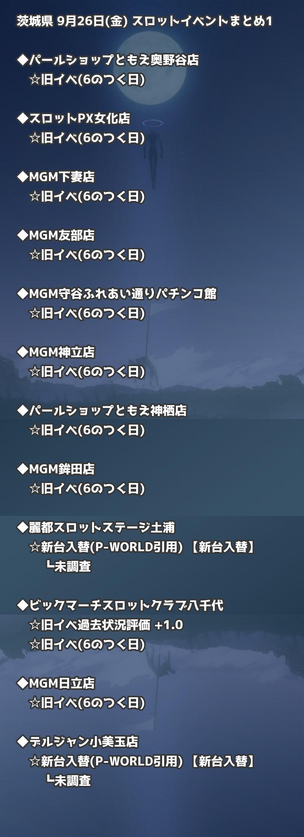【茨城県】9月26日(金) パチンコホールイベント取材まとめ記事です。