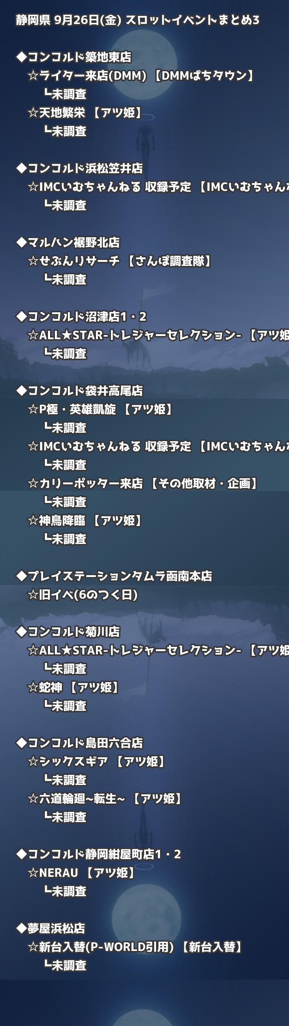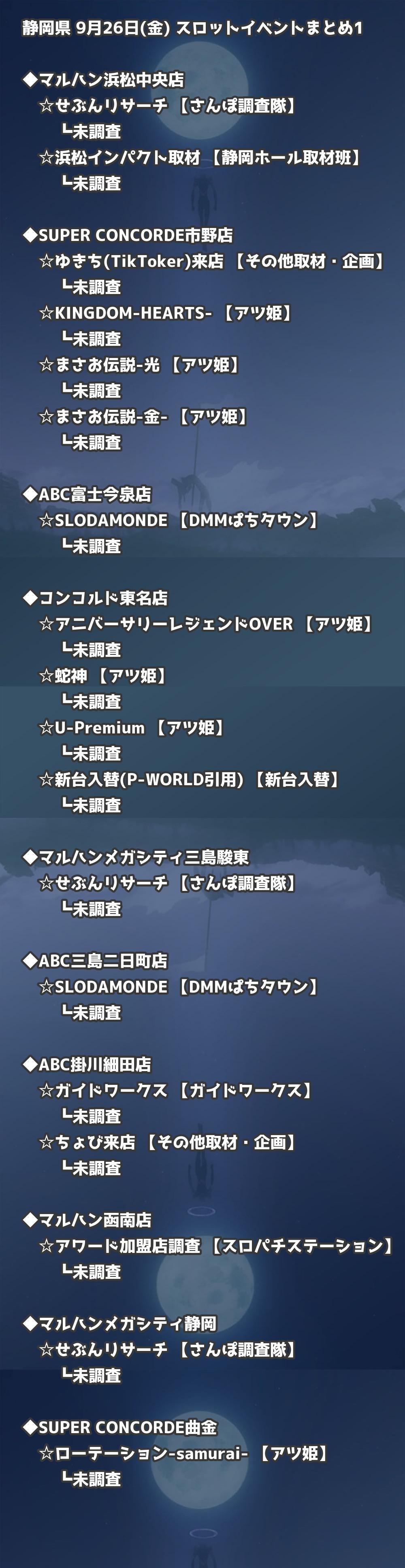 📊 静岡県 9月26日(金) 勝てるパチンコ・スロット取材店舗一覧|おすすめ順