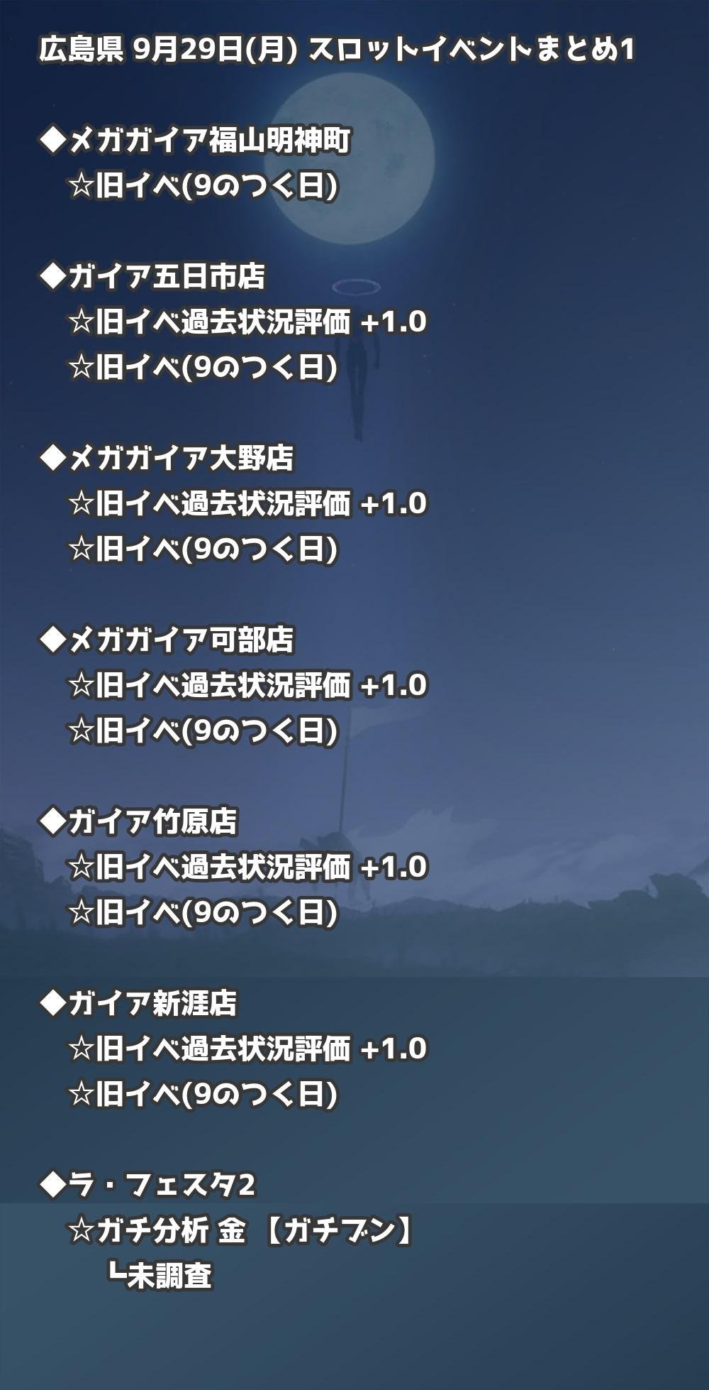 【広島県】9月29日(月) パチンコホールイベント取材まとめ記事です。