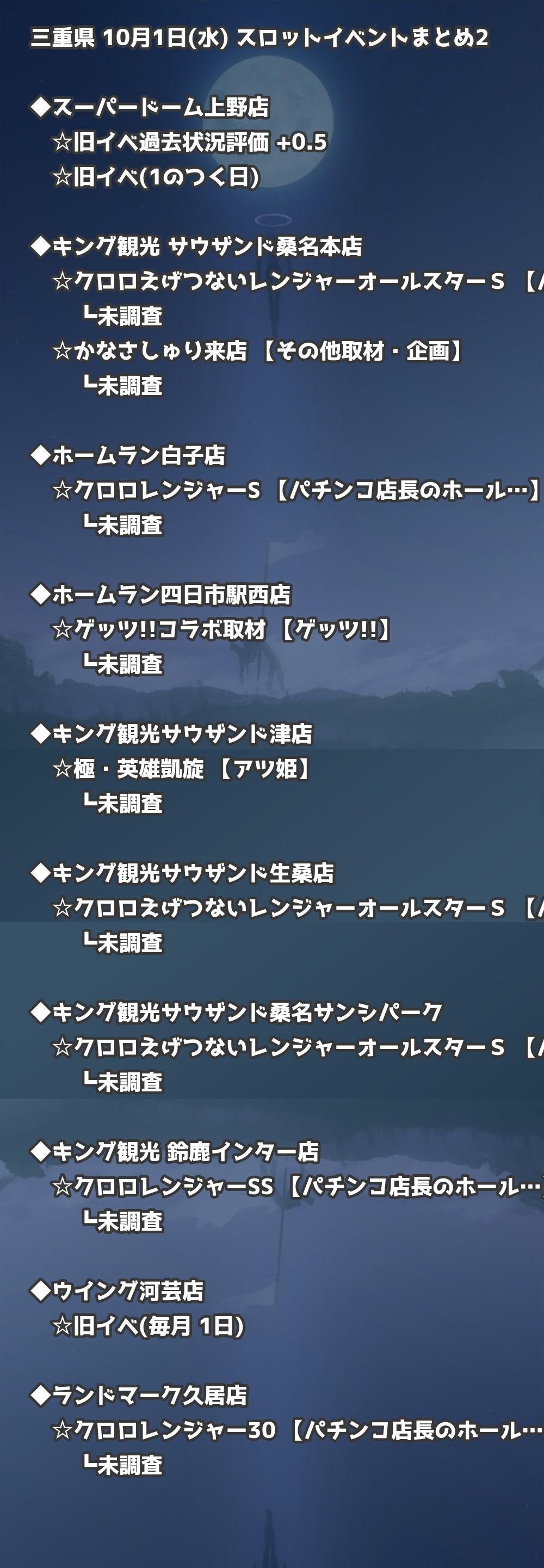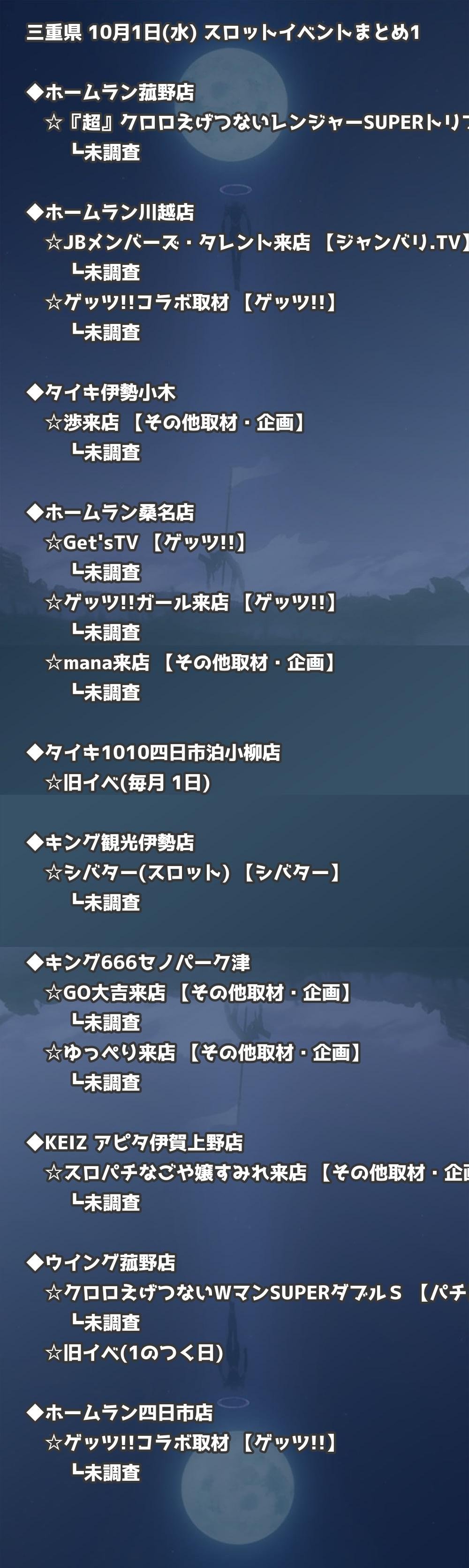 📊 三重県 10月1日(水) 勝てるパチンコ・スロット取材店舗一覧|おすすめ順