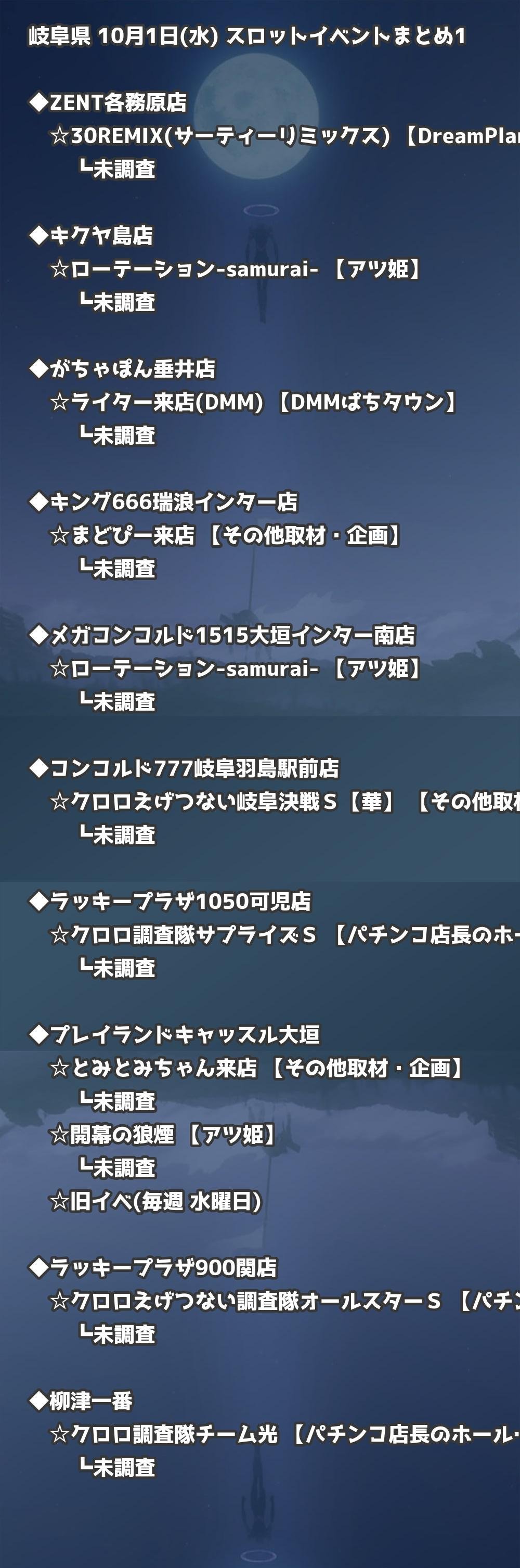【岐阜県】10月1日(水) パチンコホールイベント取材まとめ記事です。