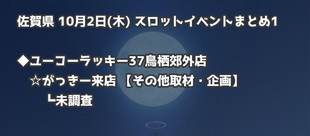 【佐賀県】10月2日(木) パチンコホールイベント取材まとめ記事です。