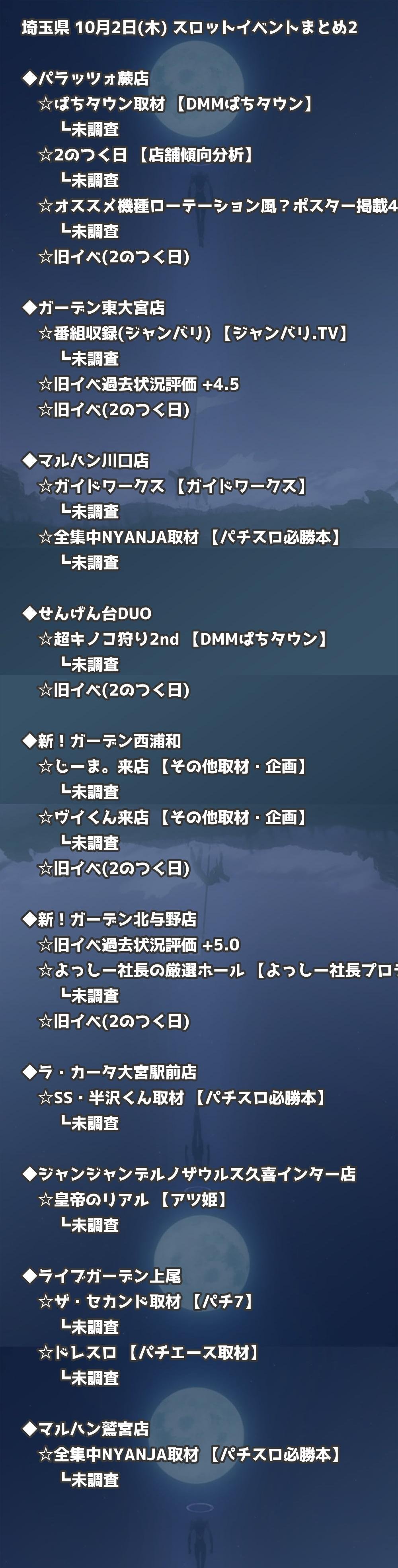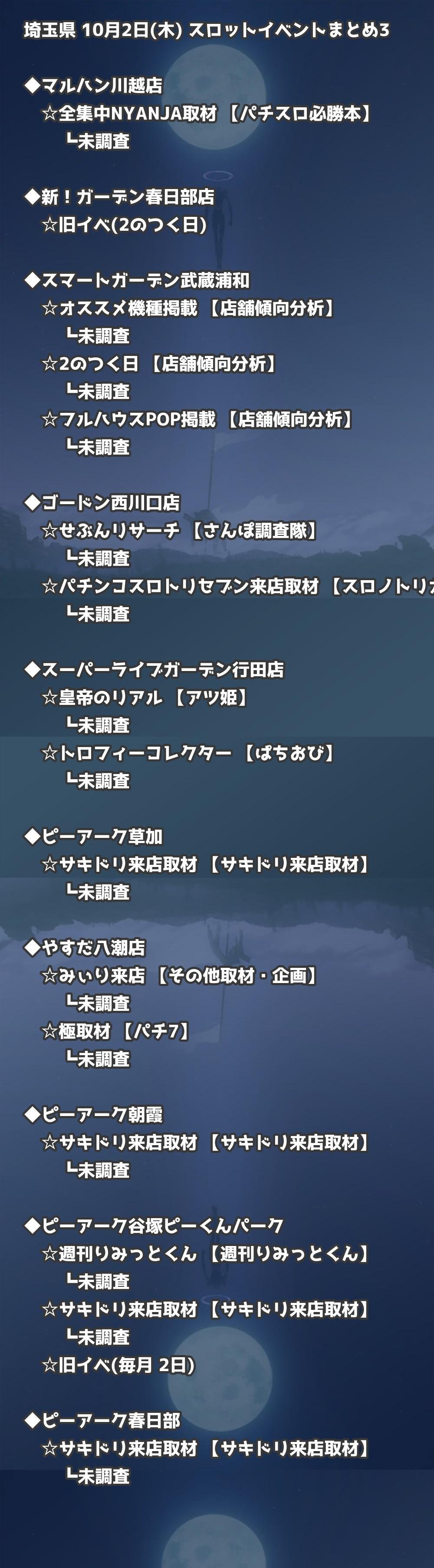📊 埼玉県 10月2日(木) 勝てるパチンコ・スロット取材店舗一覧|おすすめ順