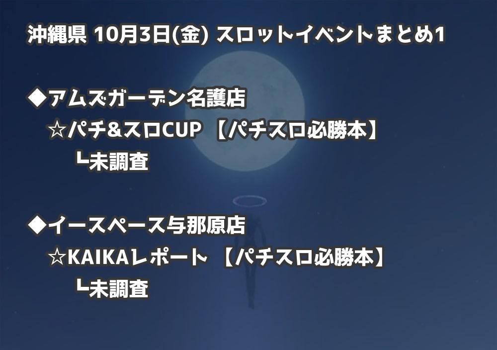 【沖縄県】10月3日(金) パチンコホールイベント取材まとめ記事です。