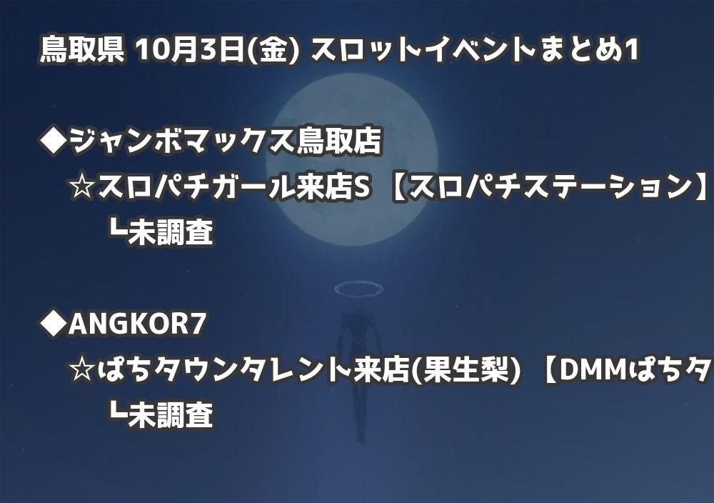【鳥取県】10月3日(金) パチンコホールイベント取材まとめ記事です。