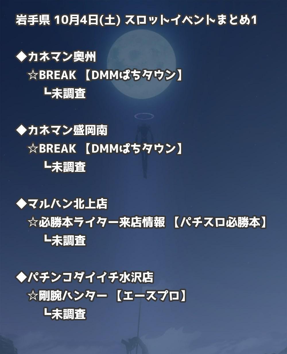 【岩手県】10月4日(土) パチンコホールイベント取材まとめ記事です。