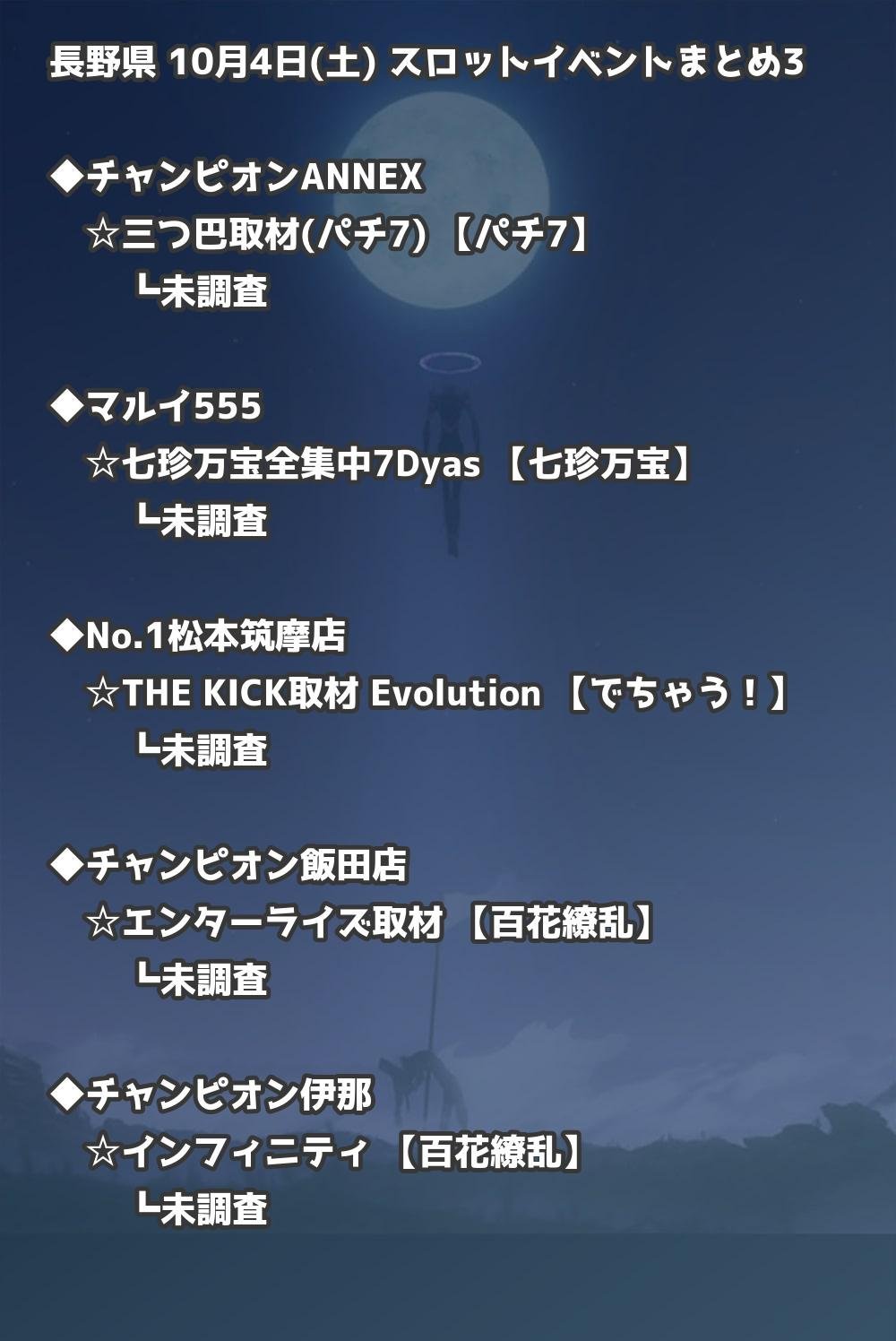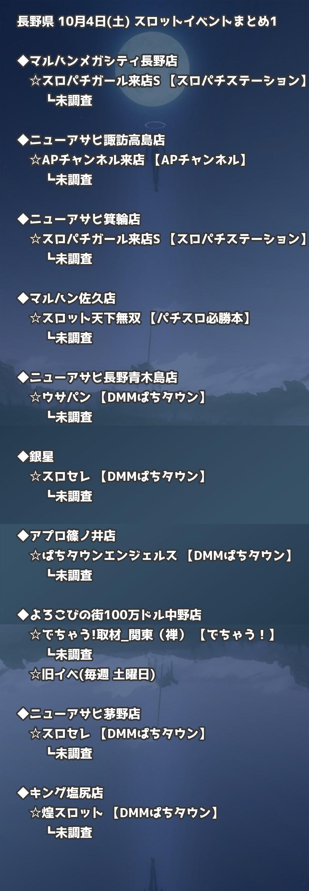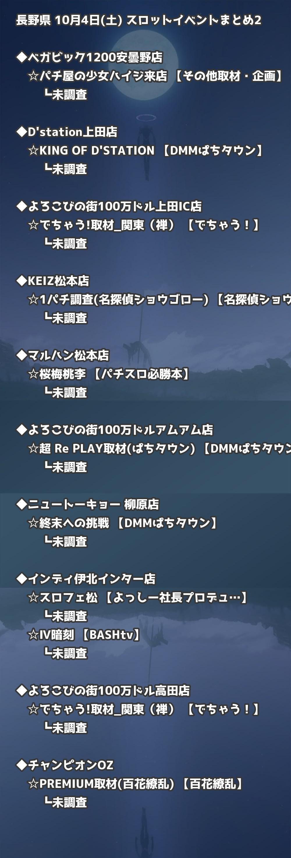 📊 長野県 10月4日(土) 勝てるパチンコ・スロット取材店舗一覧|おすすめ順