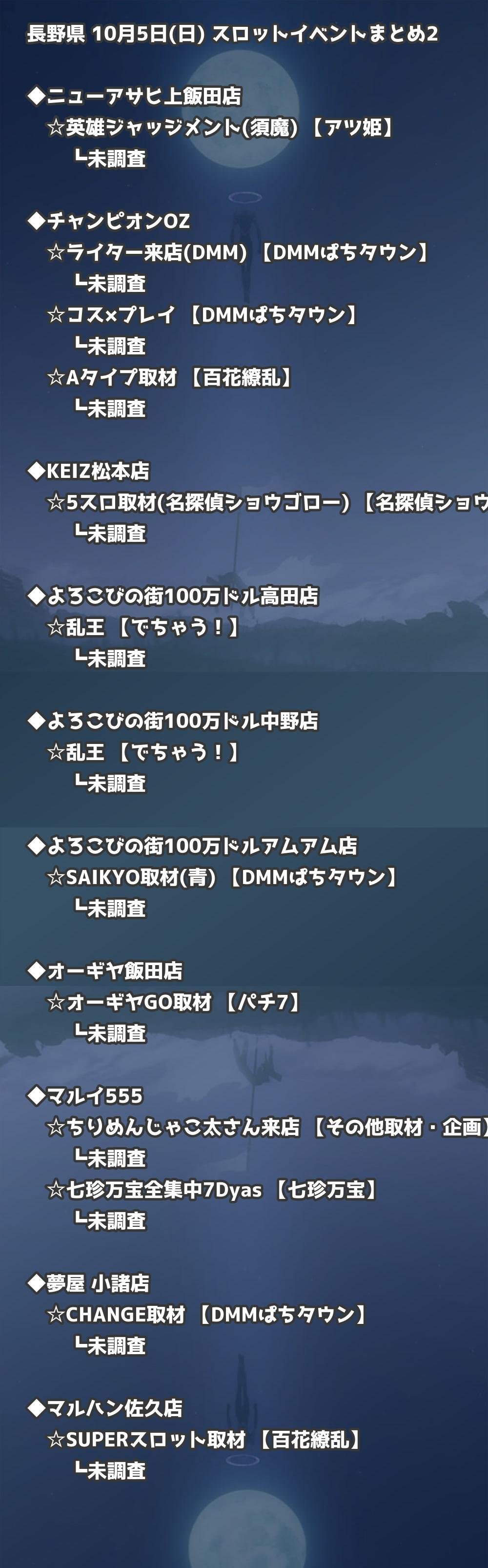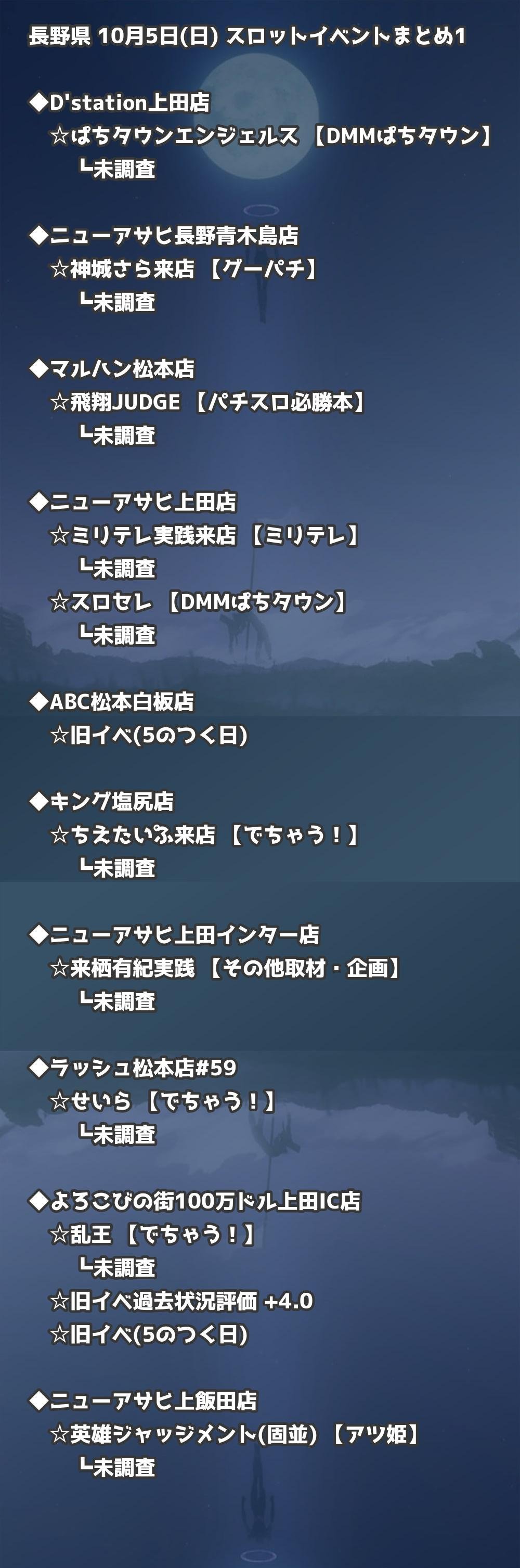 📊 長野県 10月5日(日) 勝てるパチンコ・スロット取材店舗一覧|おすすめ順