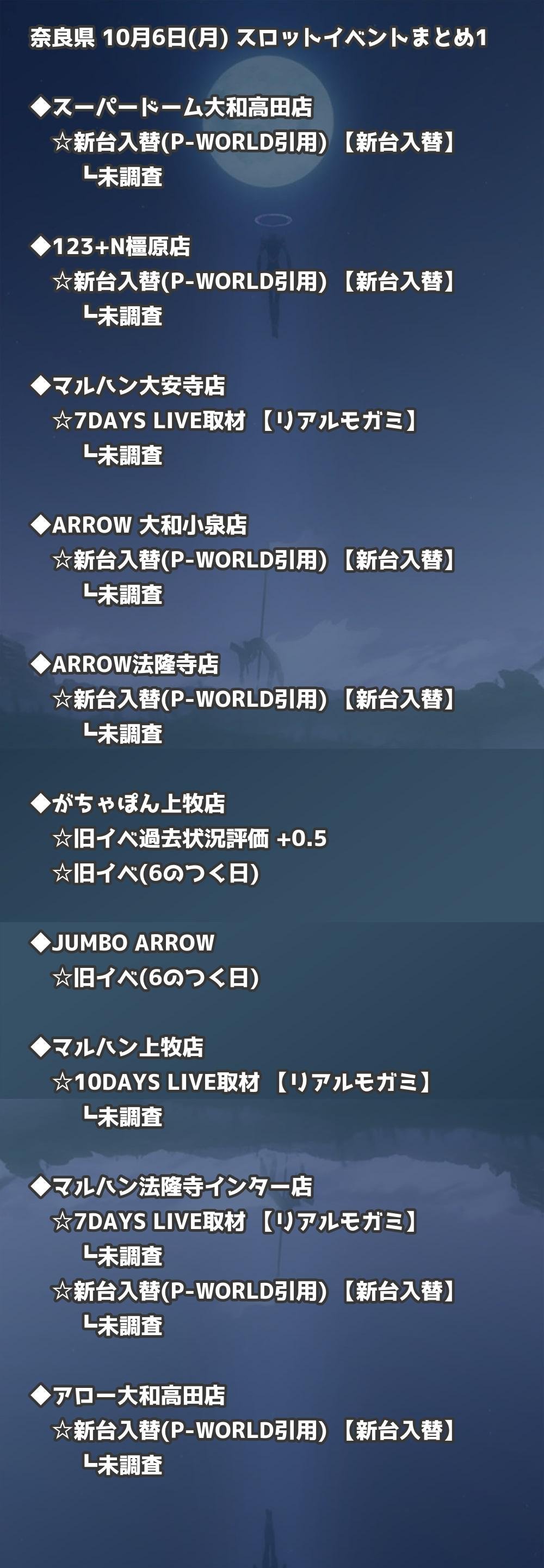 【奈良県】10月6日(月) パチンコホールイベント取材まとめ記事です。