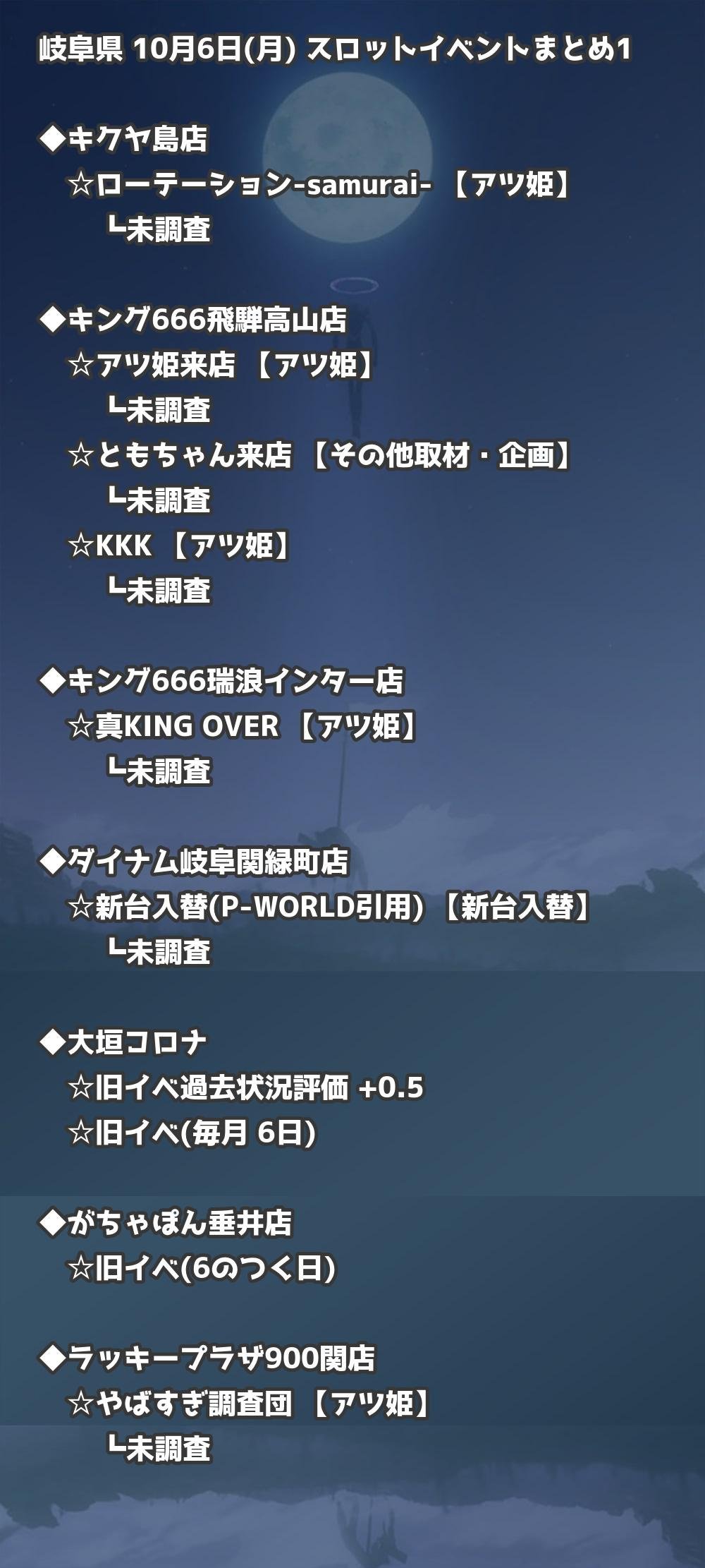【岐阜県】10月6日(月) パチンコホールイベント取材まとめ記事です。