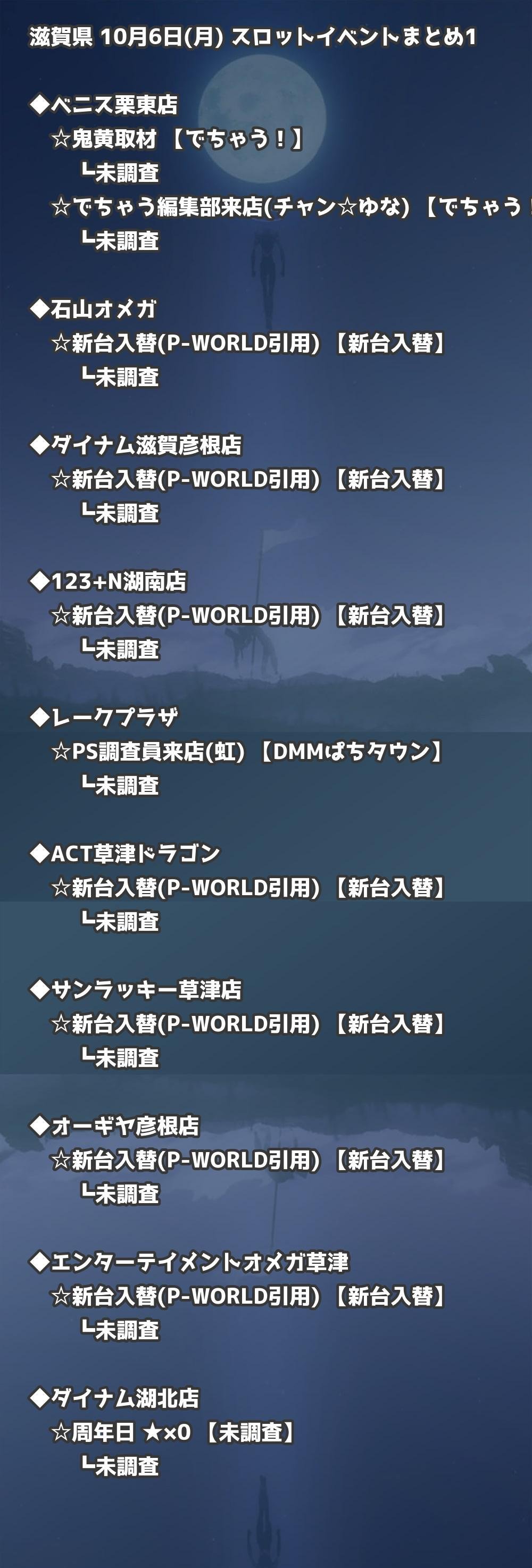 📊 滋賀県 10月6日(月) 勝てるパチンコ・スロット取材店舗一覧|おすすめ順