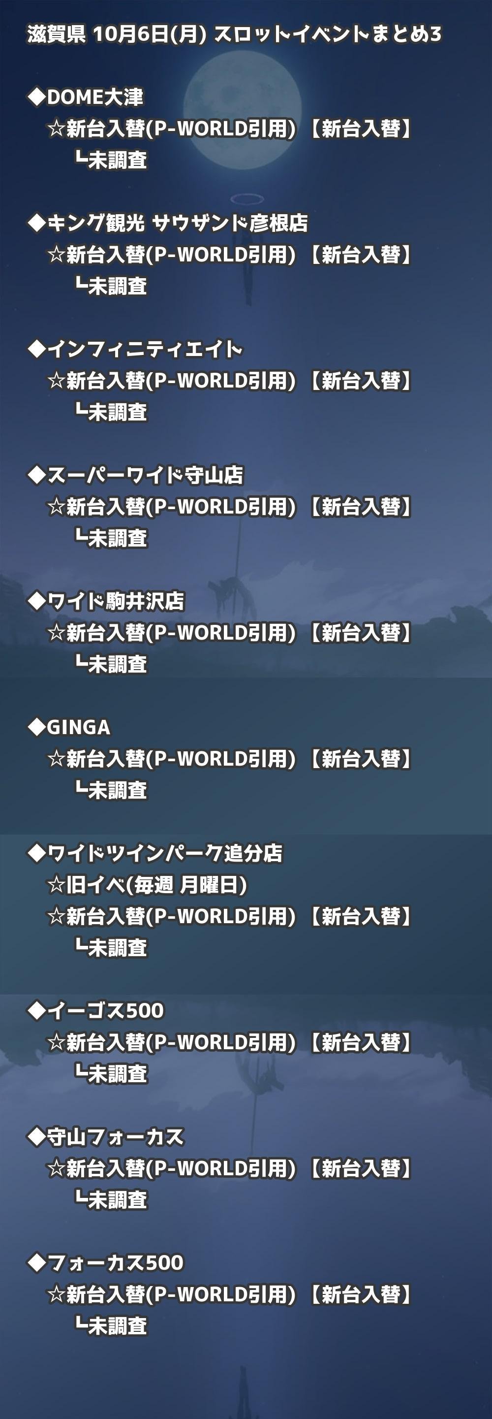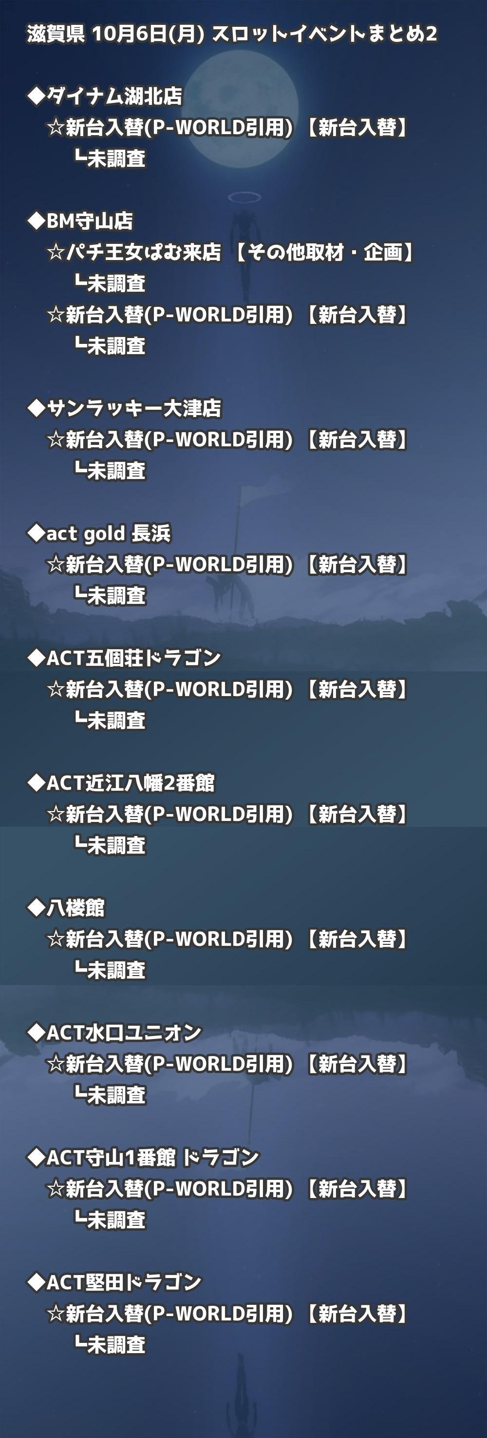 【滋賀県】10月6日(月) パチンコホールイベント取材まとめ記事です。