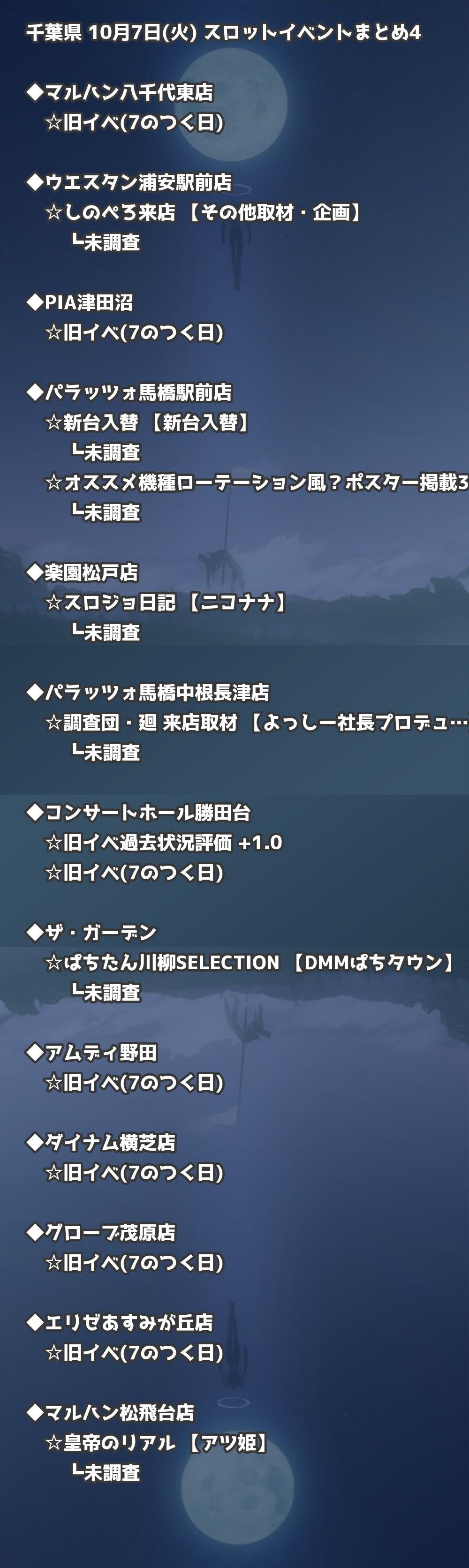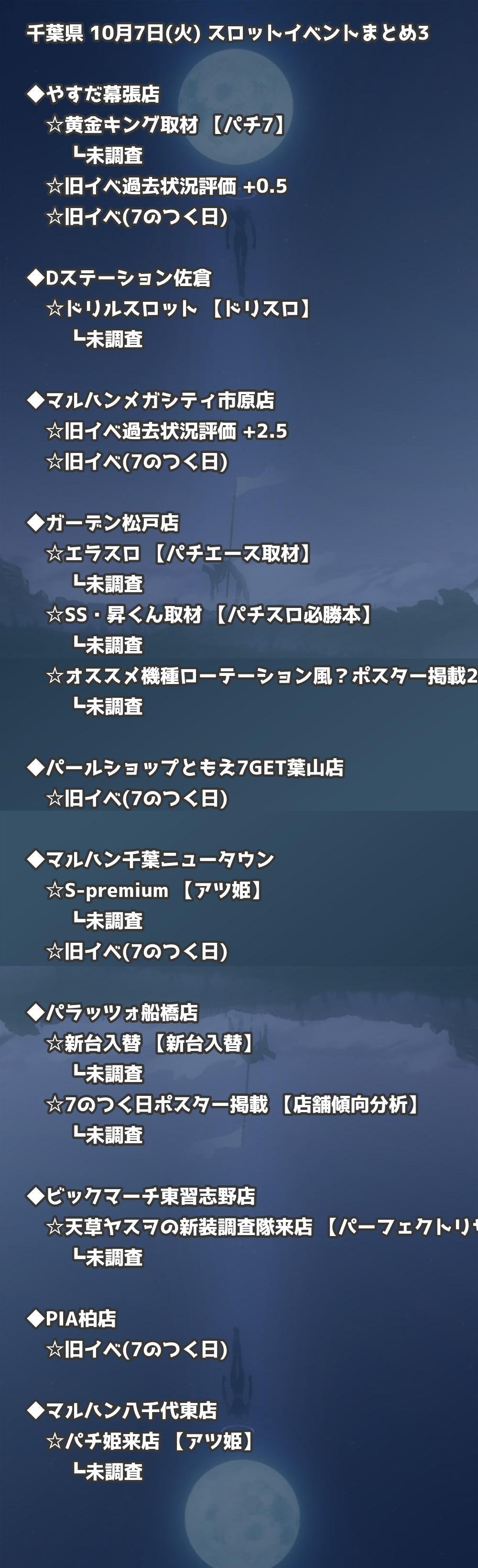 📊 千葉県 10月7日(火) 勝てるパチンコ・スロット取材店舗一覧|おすすめ順