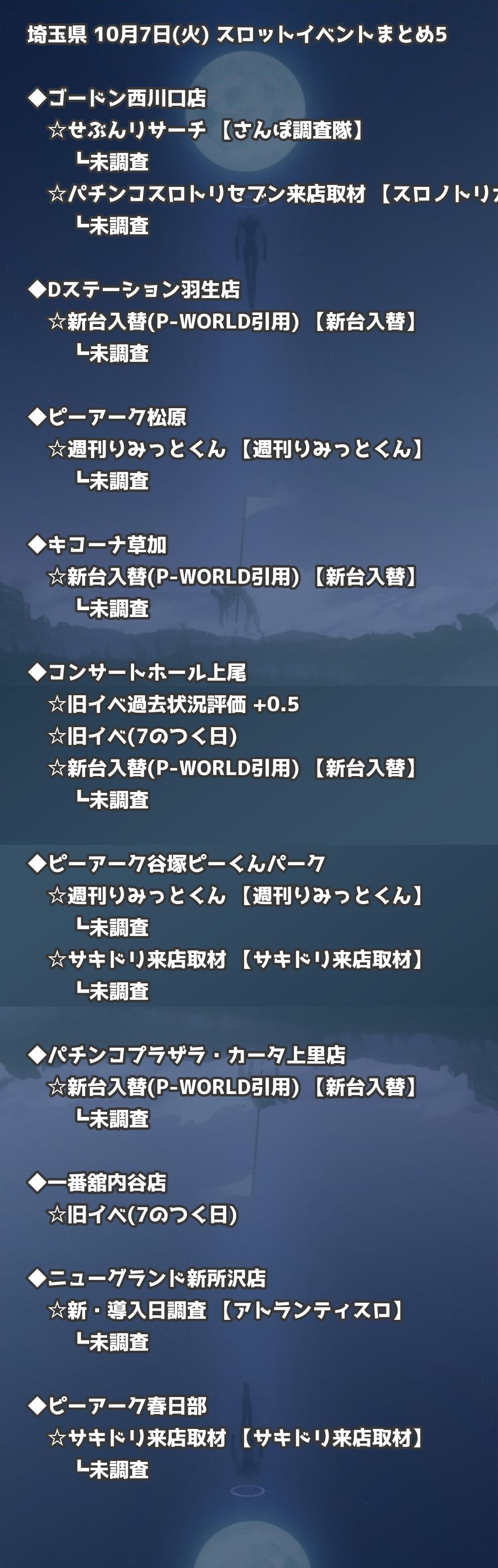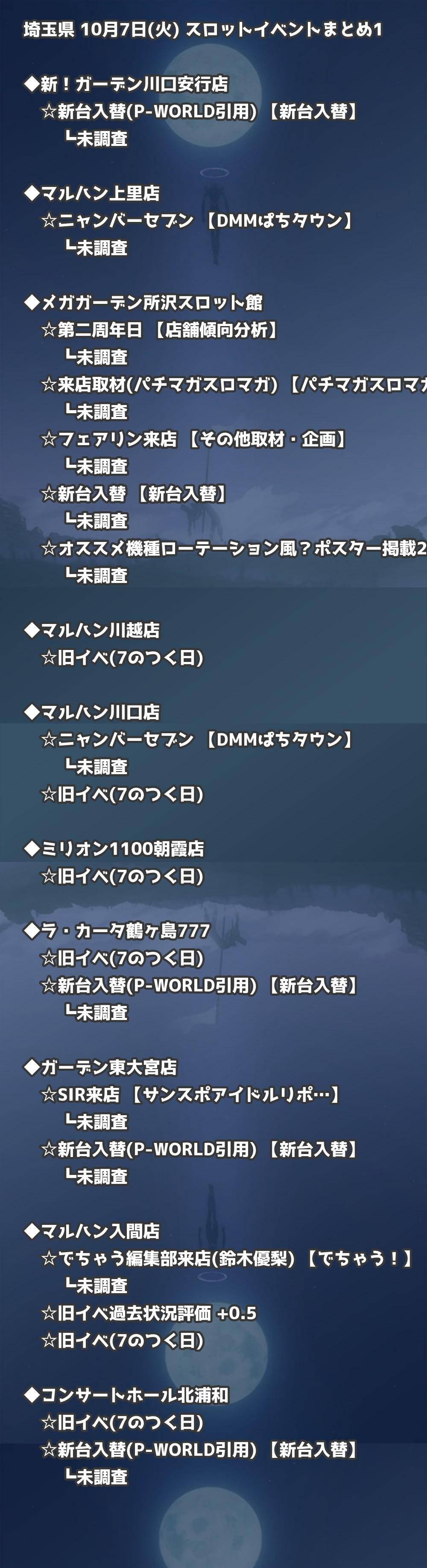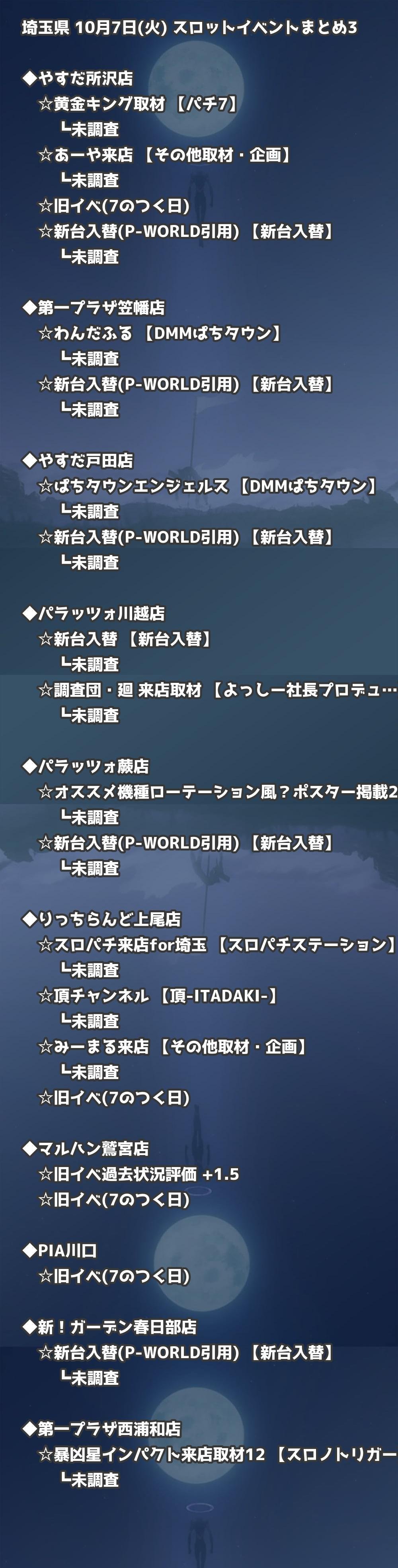 【埼玉県】10月7日(火) パチンコホールイベント取材まとめ記事です。