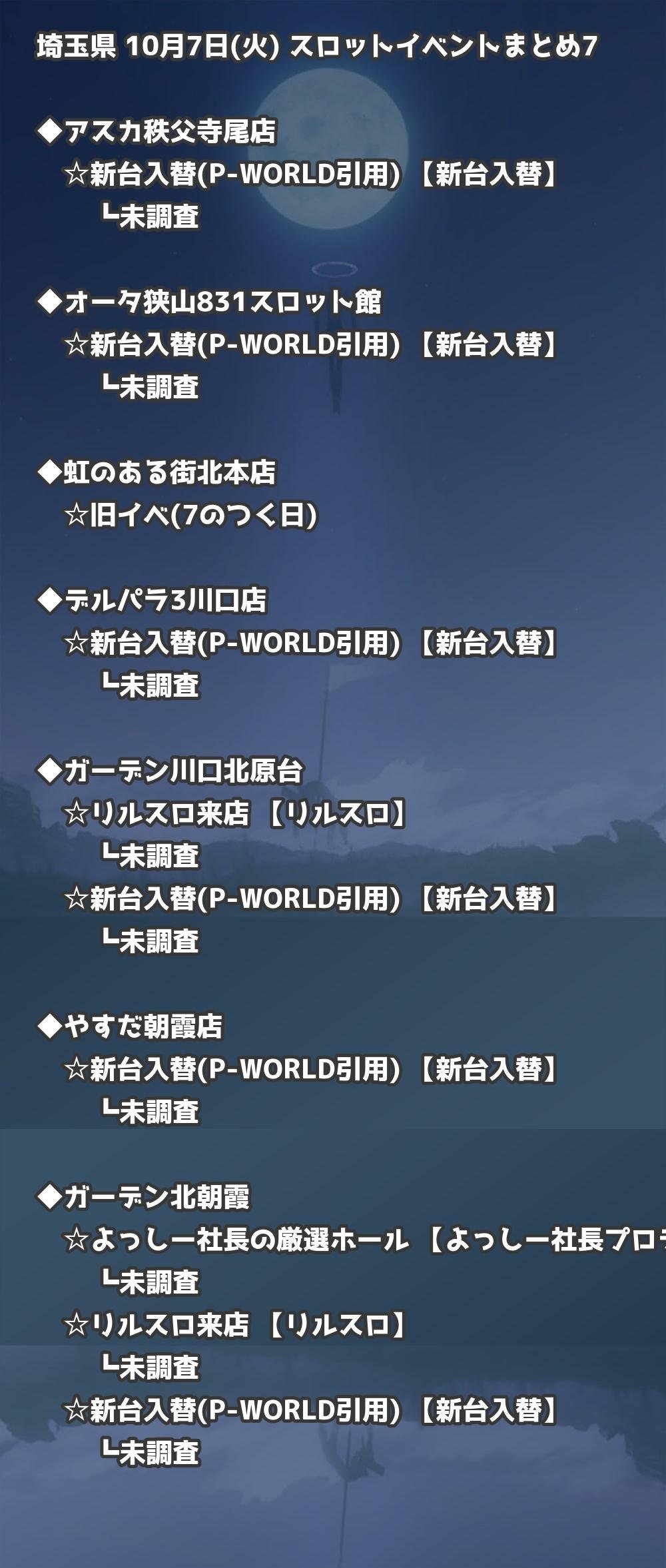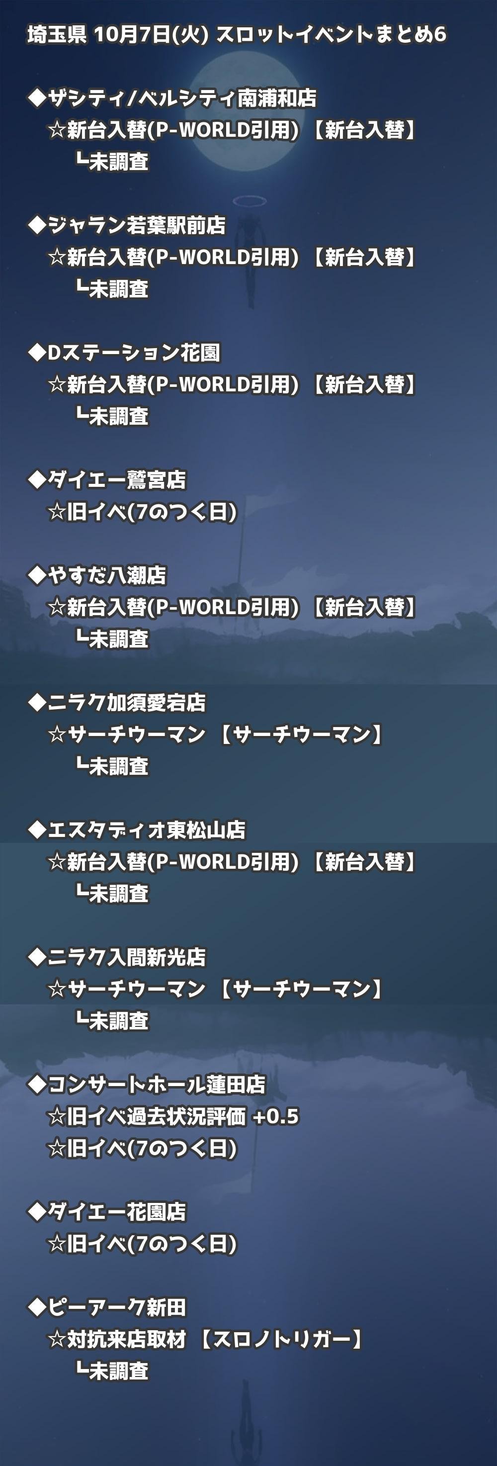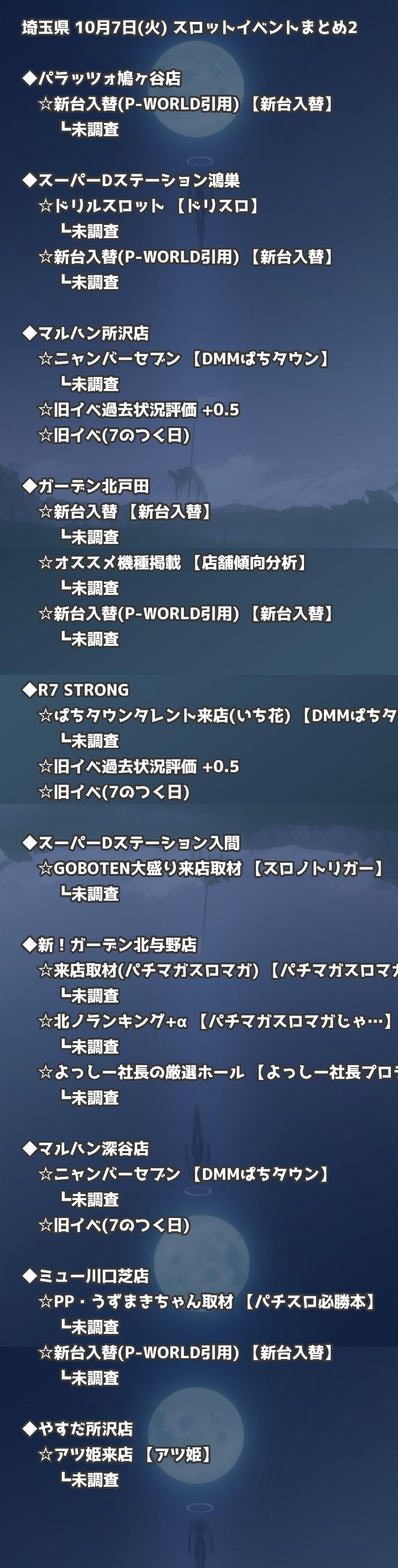 【埼玉県】10月7日(火) パチンコホールイベント取材まとめ記事です。