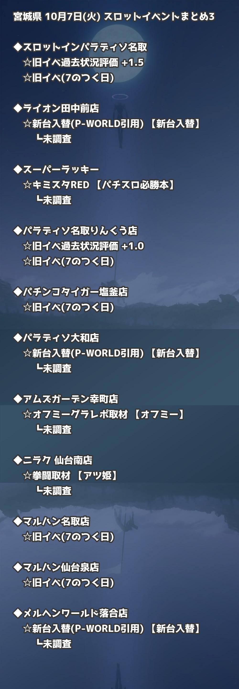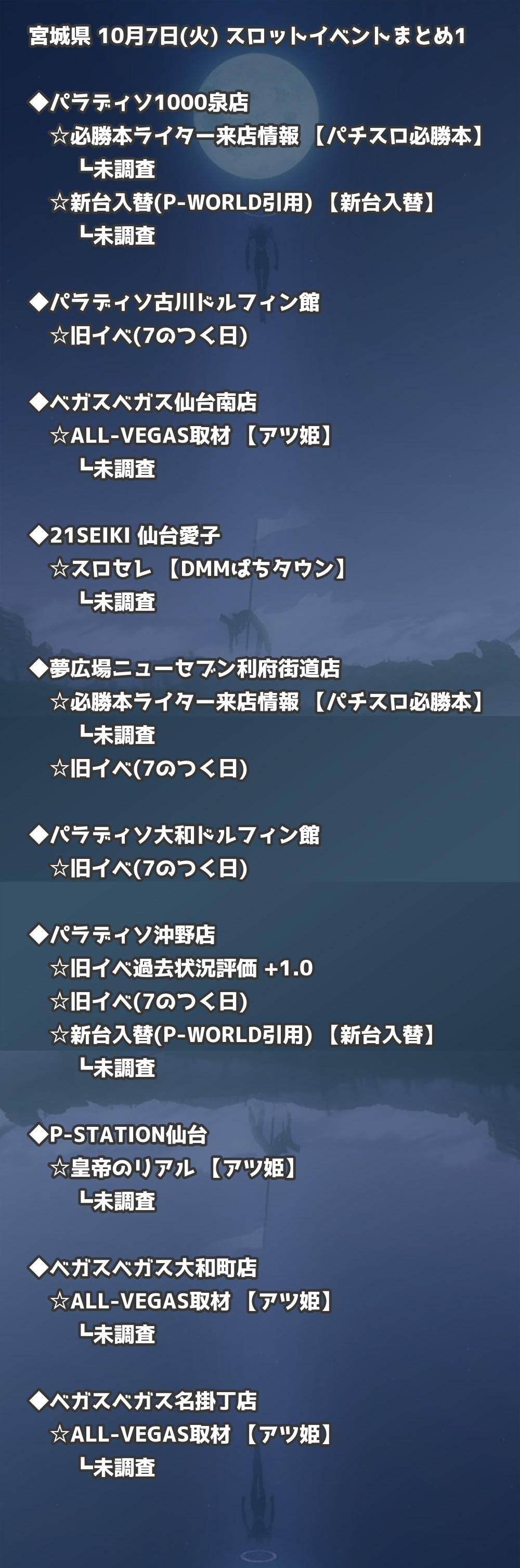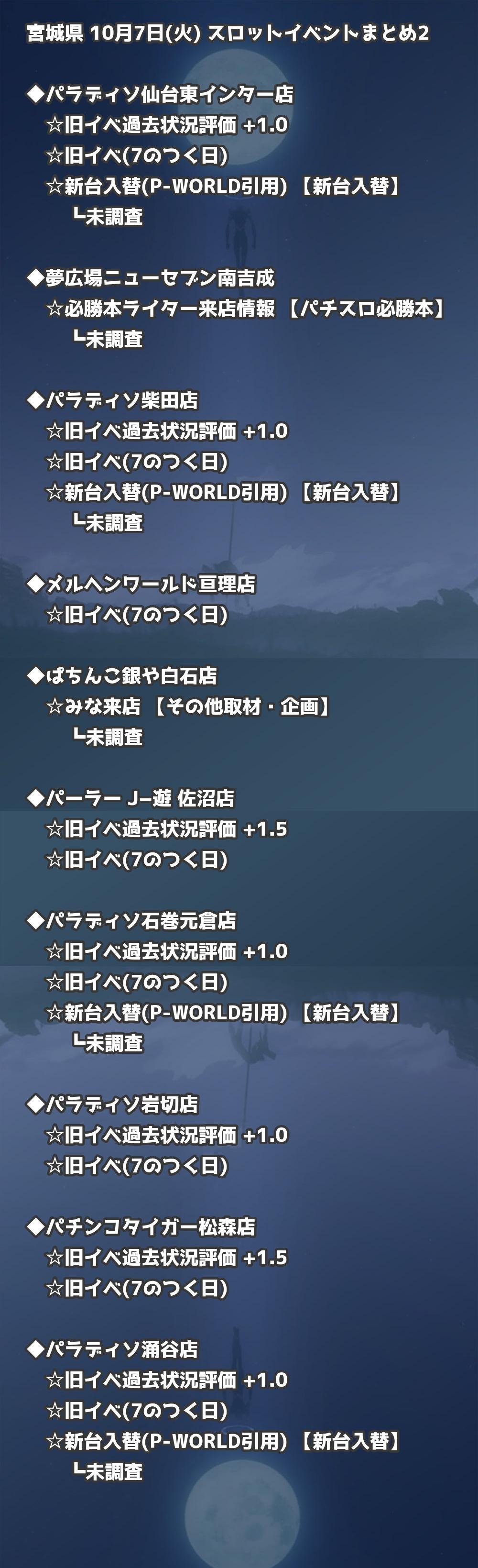 【宮城県】10月7日(火) パチンコホールイベント取材まとめ記事です。