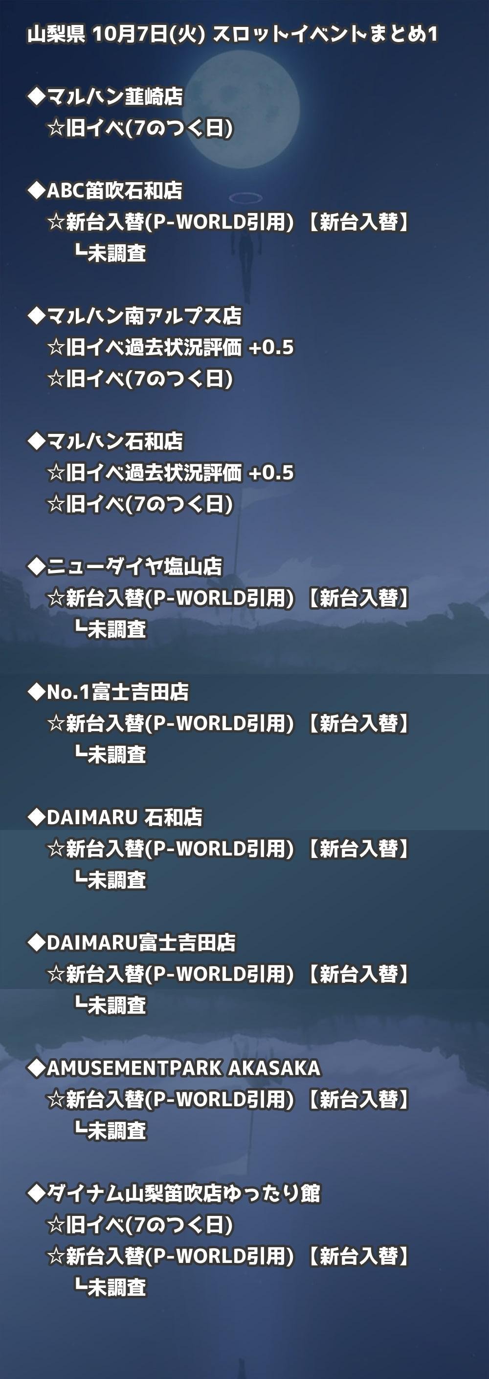 【山梨県】10月7日(火) パチンコホールイベント取材まとめ記事です。