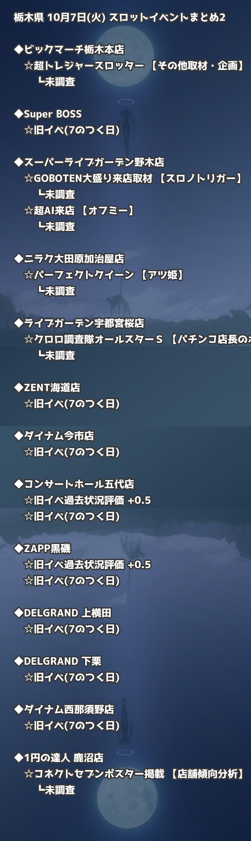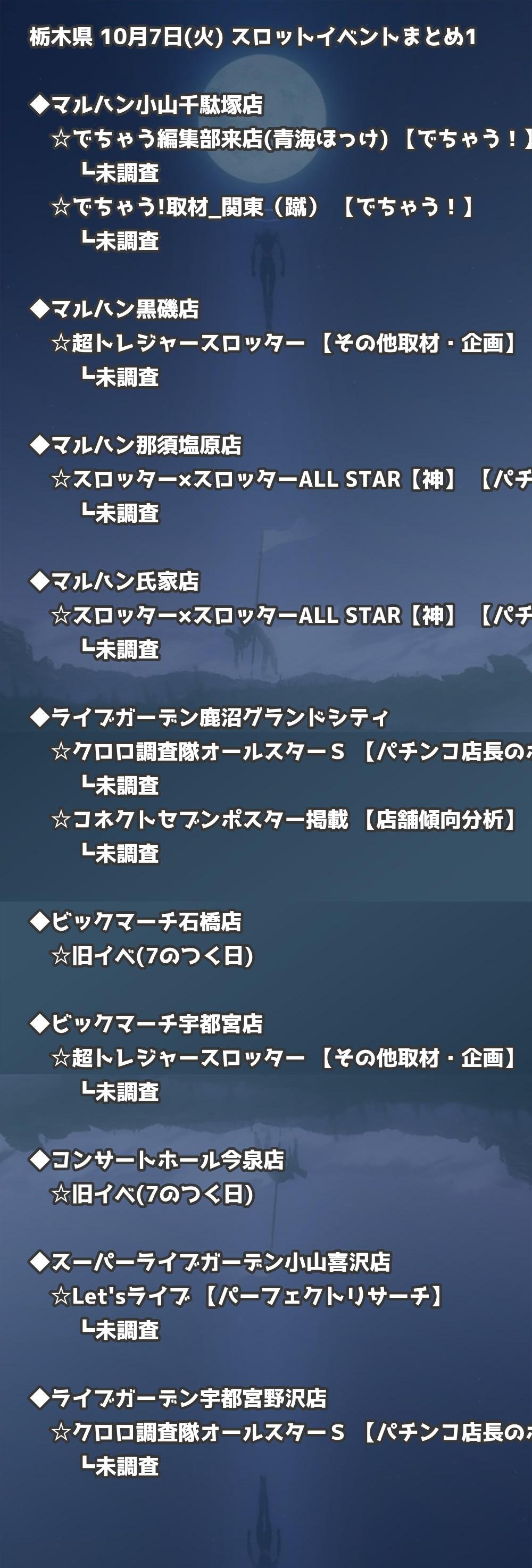 📊 栃木県 10月7日(火) 勝てるパチンコ・スロット取材店舗一覧|おすすめ順