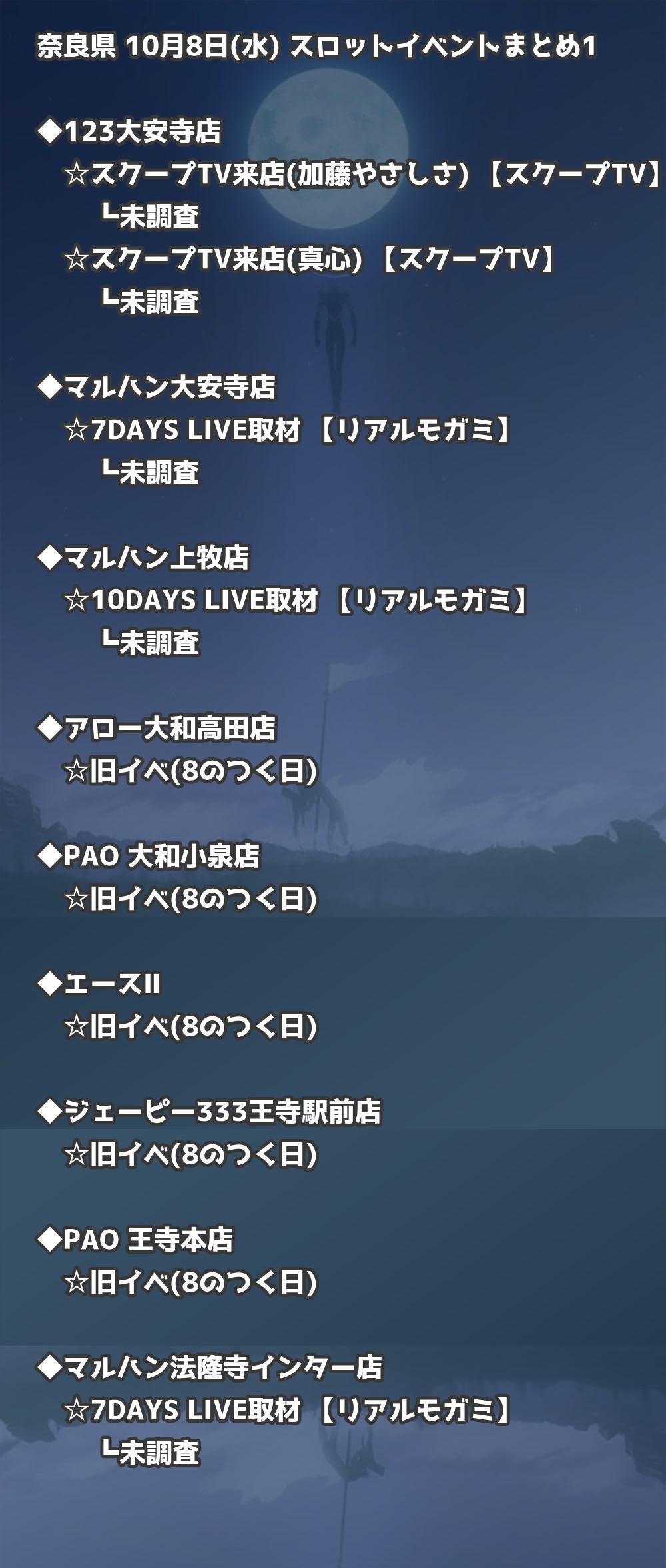 【奈良県】10月8日(水) パチンコホールイベント取材まとめ記事です。