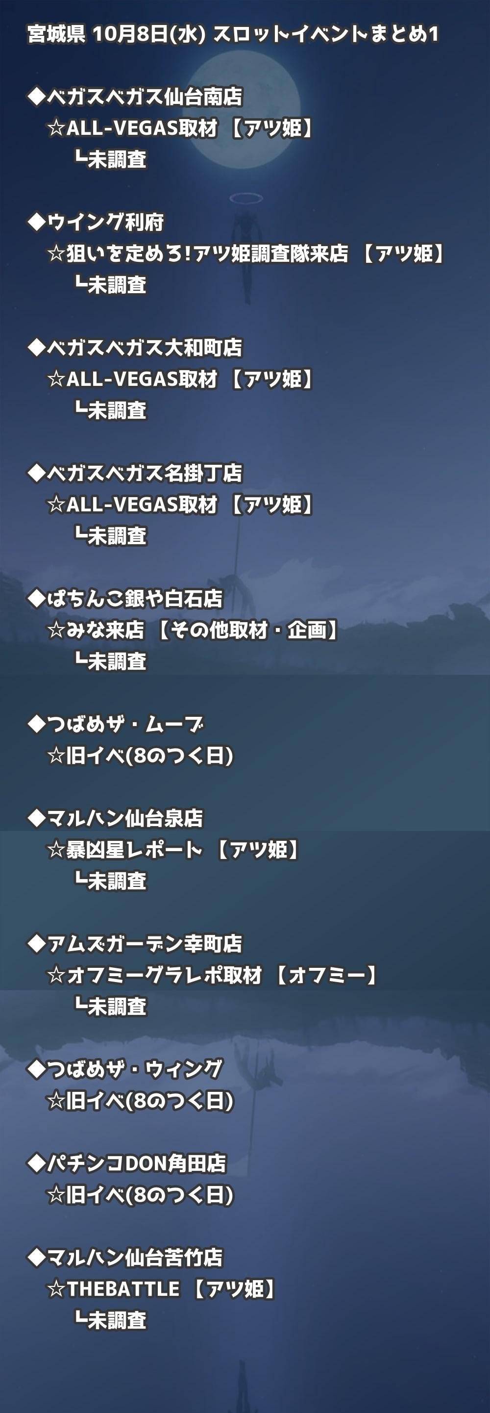 宮城 10月8日(水) パチンコ取材|仙台・泉中央情報まとめ