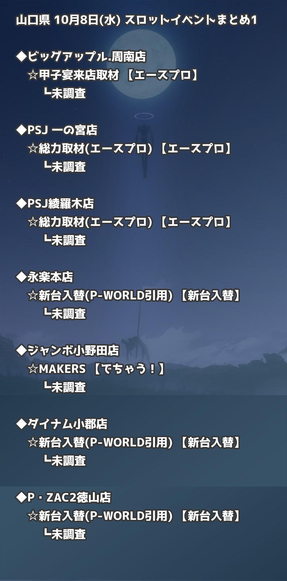 【山口県】10月8日(水) パチンコホールイベント取材まとめ記事です。