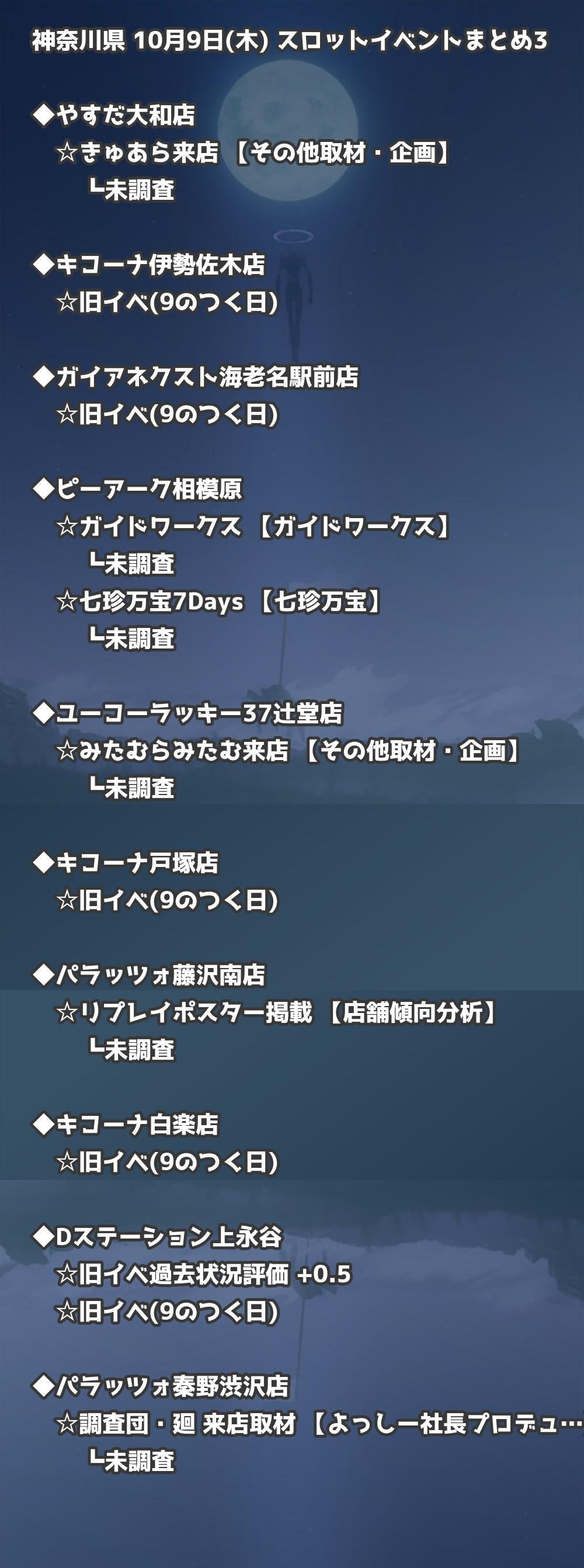 📊 神奈川県 10月9日(木) 勝てるパチンコ・スロット取材店舗一覧|おすすめ順