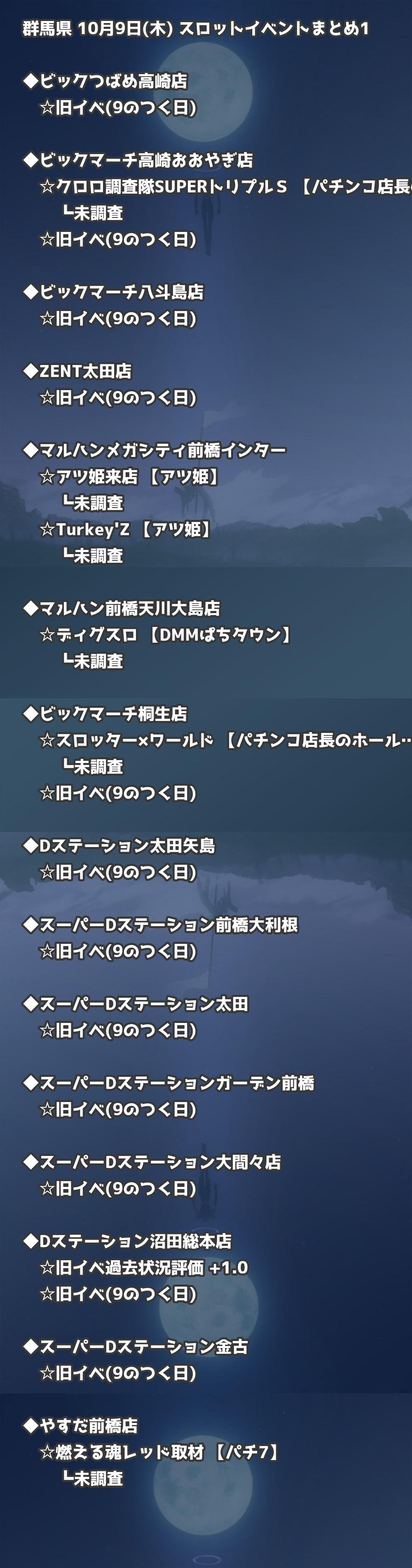 📊 群馬県 10月9日(木) 勝てるパチンコ・スロット取材店舗一覧|おすすめ順