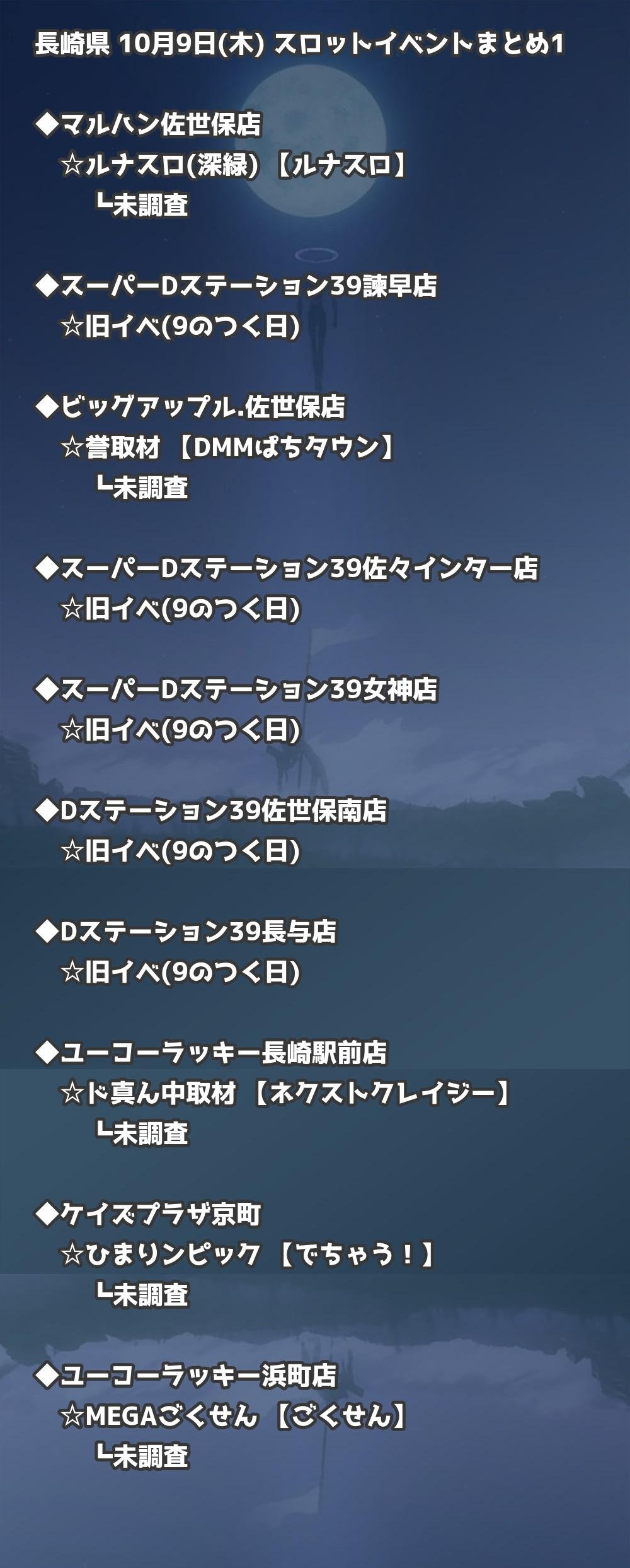 【長崎県】10月9日(木) パチンコホールイベント取材まとめ記事です。