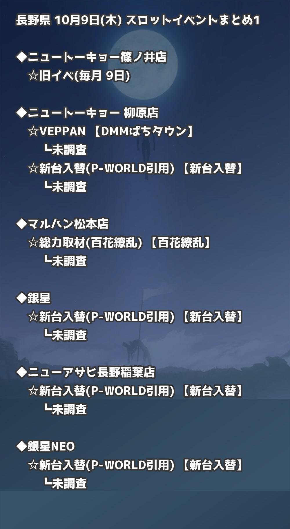 📊 長野県 10月9日(木) 勝てるパチンコ・スロット取材店舗一覧|おすすめ順