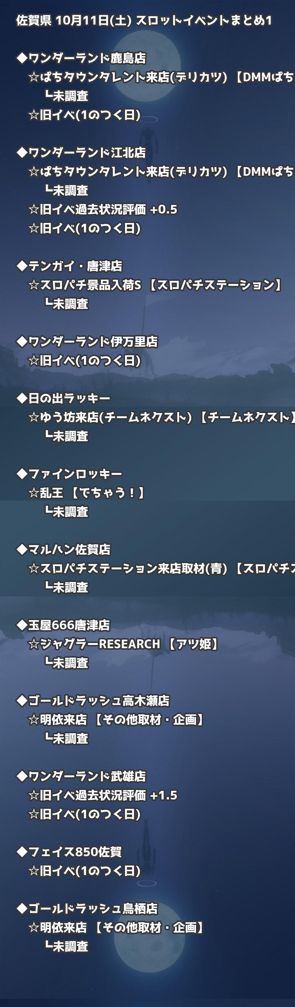 📊 佐賀県 10月11日(土) 勝てるパチンコ・スロット取材店舗一覧|おすすめ順