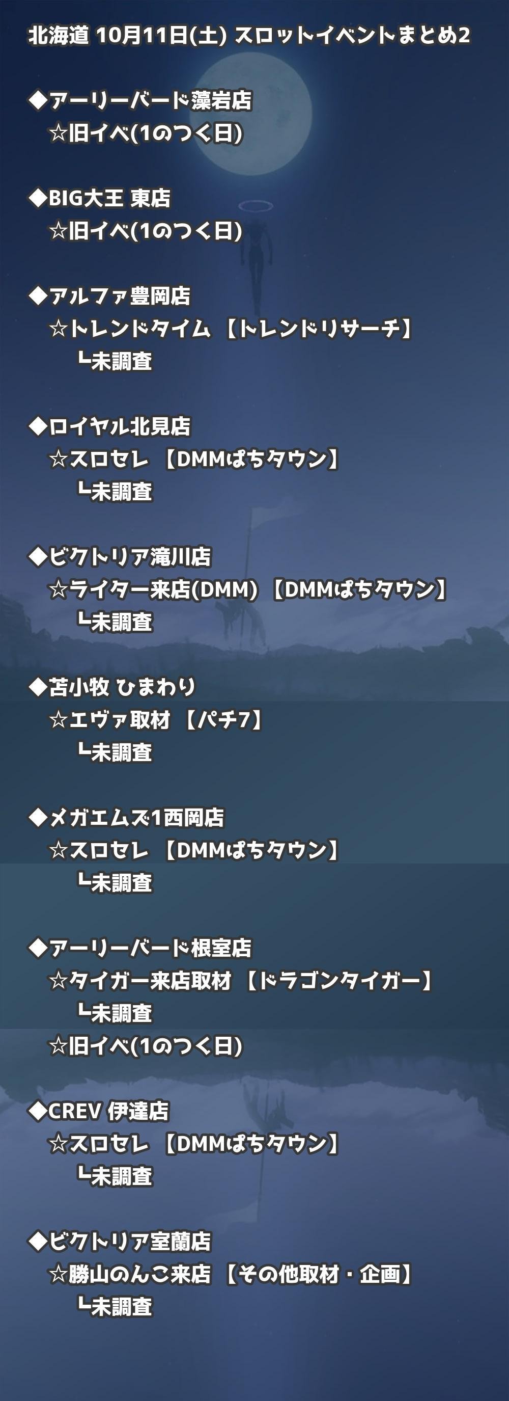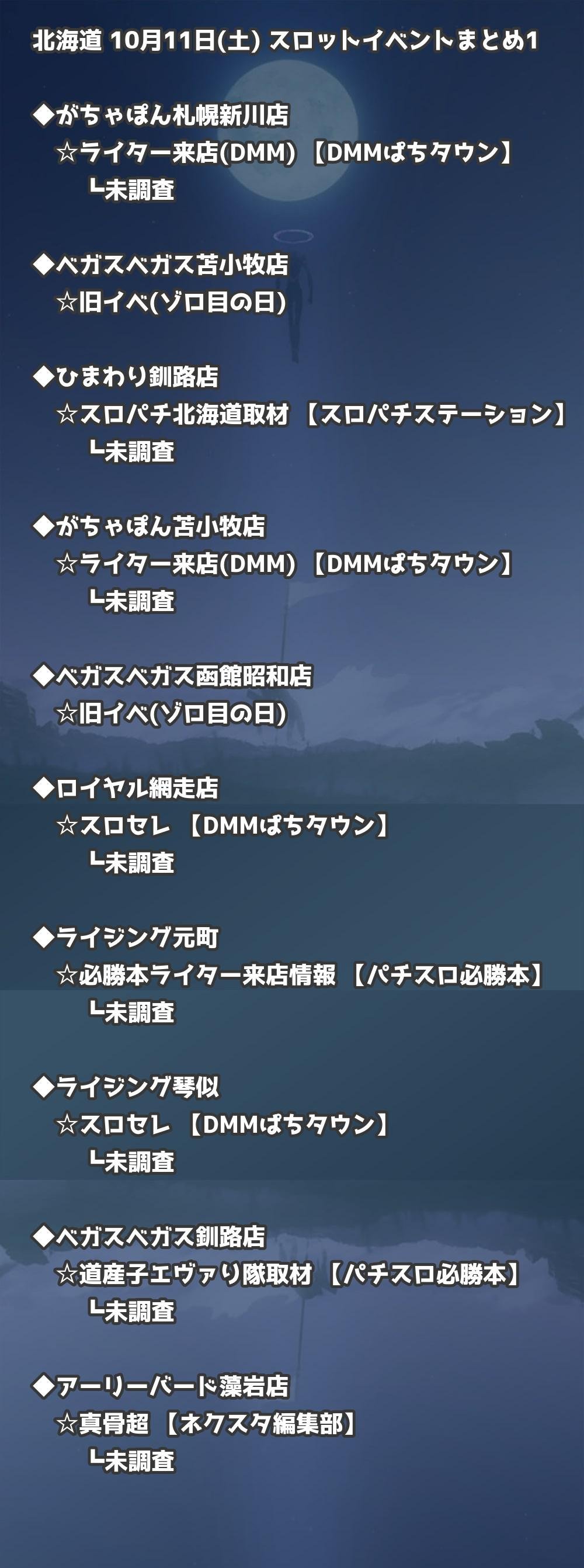 📊 北海道 10月11日(土) 勝てるパチンコ・スロット取材店舗一覧|おすすめ順