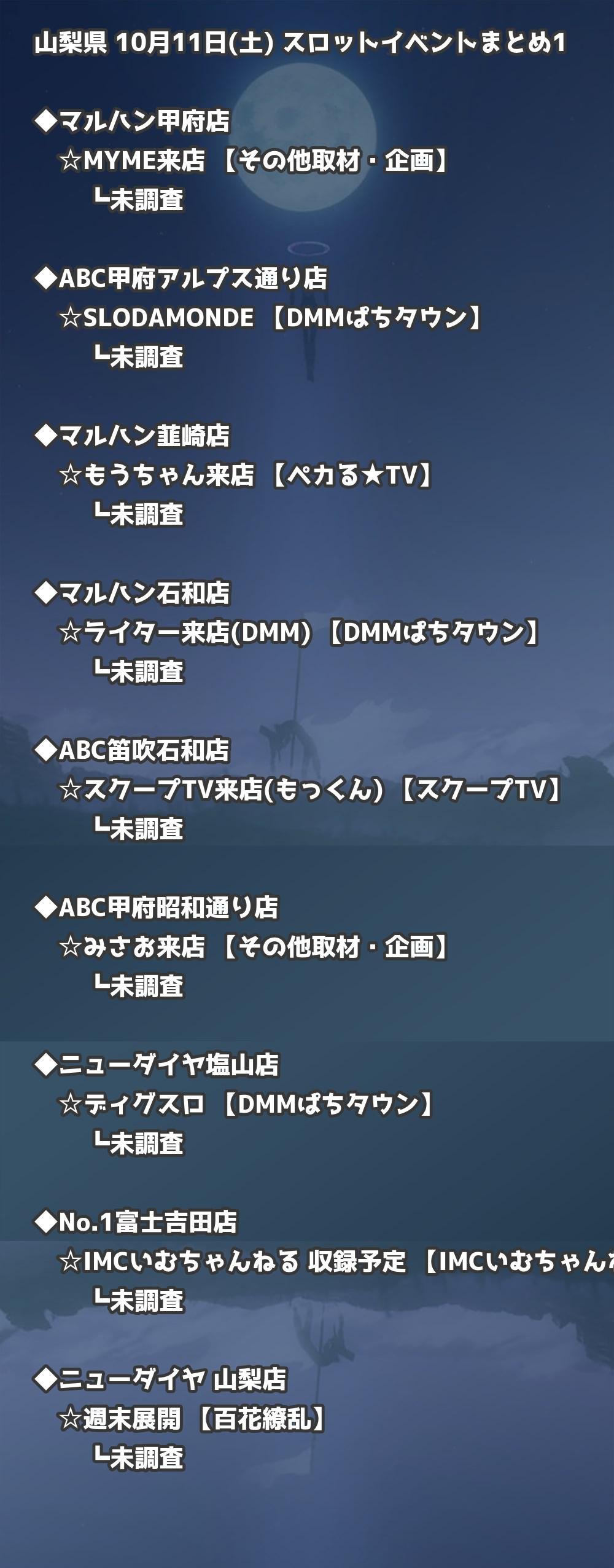 📊 山梨県 10月11日(土) 勝てるパチンコ・スロット取材店舗一覧|おすすめ順