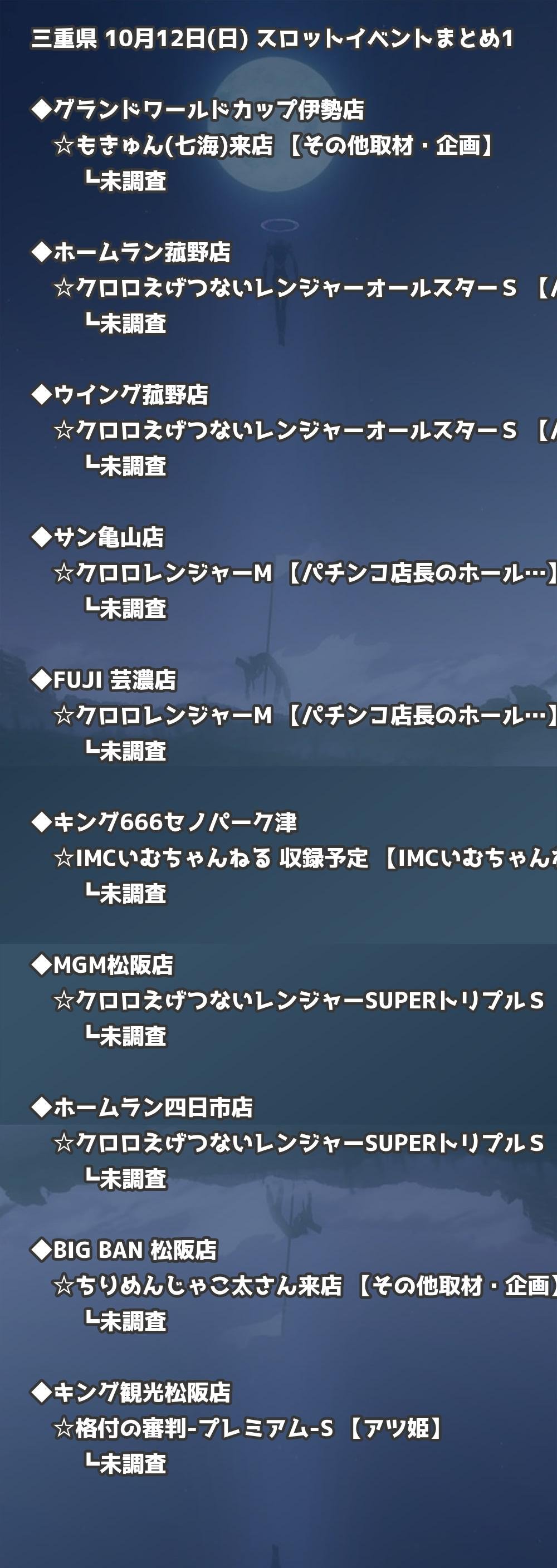 📊 三重県 10月12日(日) 勝てるパチンコ・スロット取材店舗一覧|おすすめ順