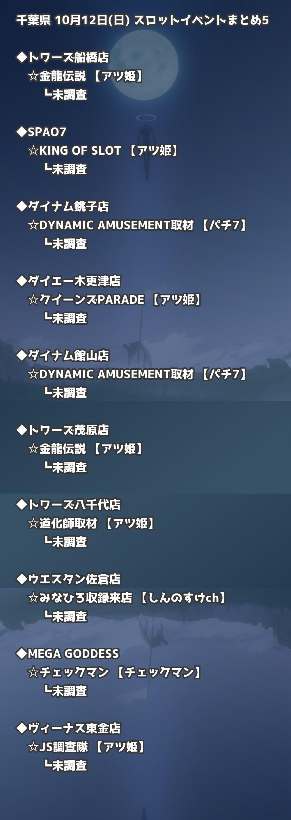 📊 千葉県 10月12日(日) 勝てるパチンコ・スロット取材店舗一覧|おすすめ順