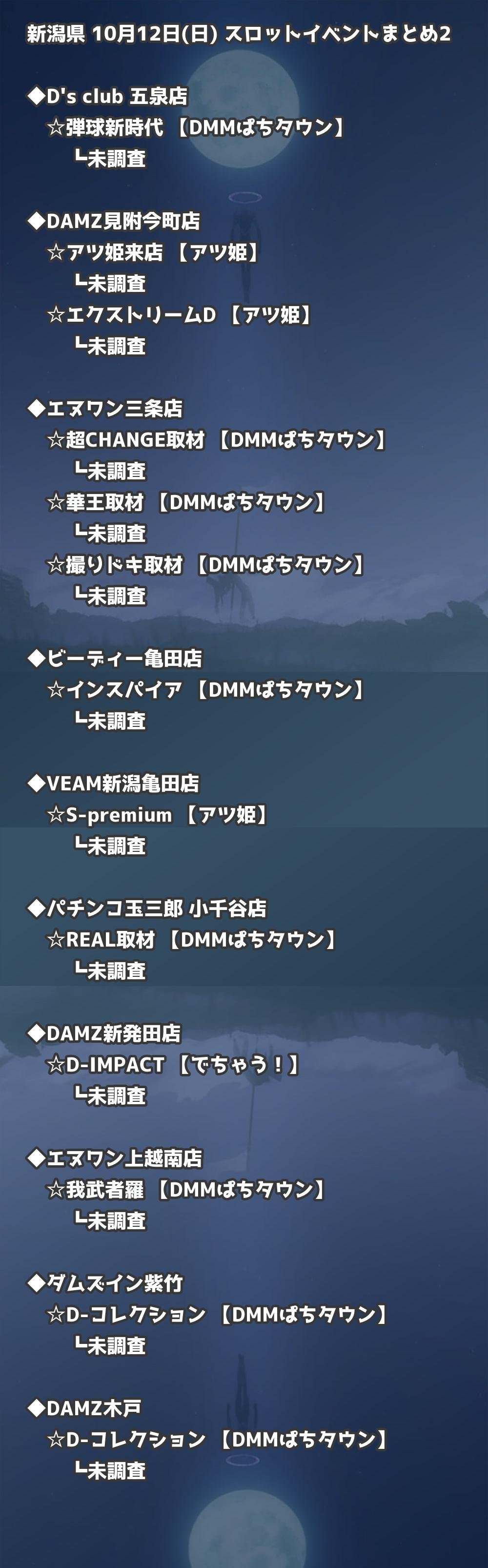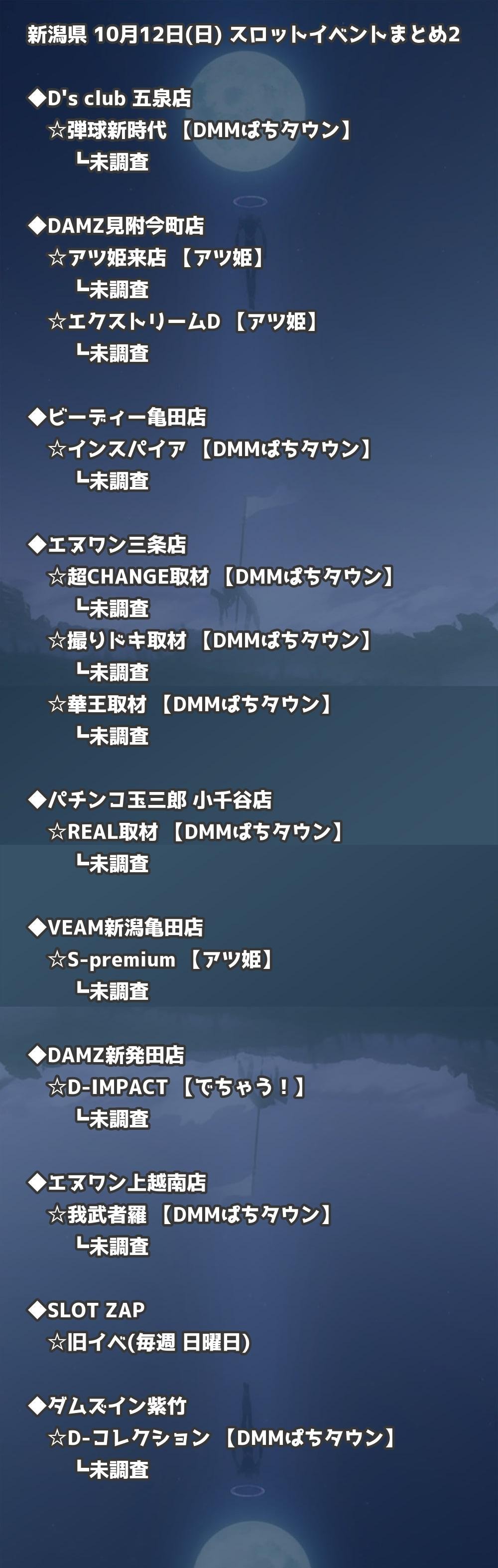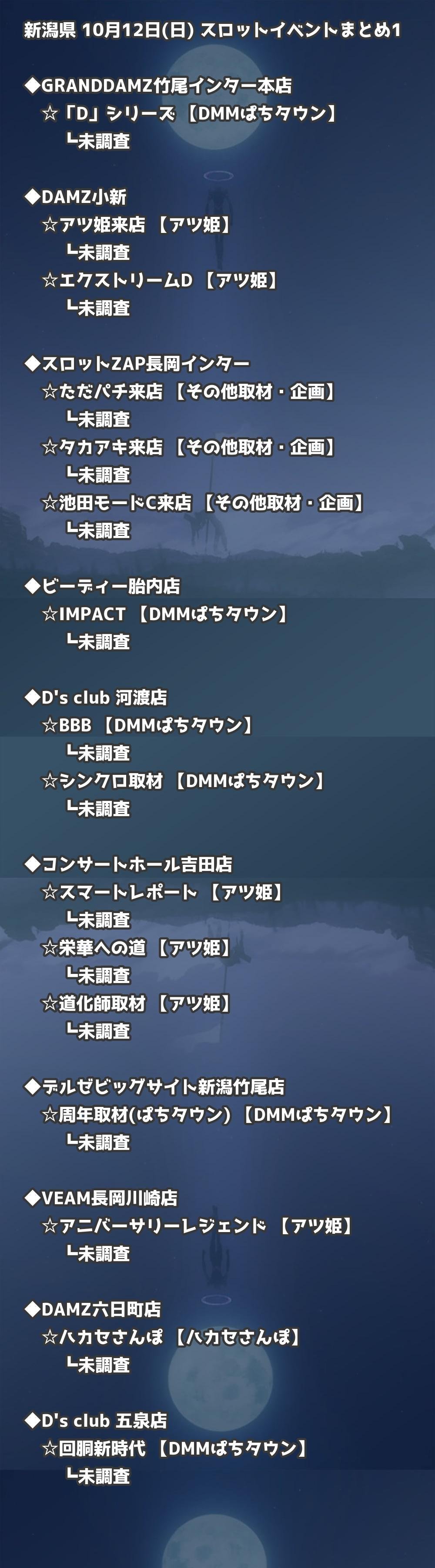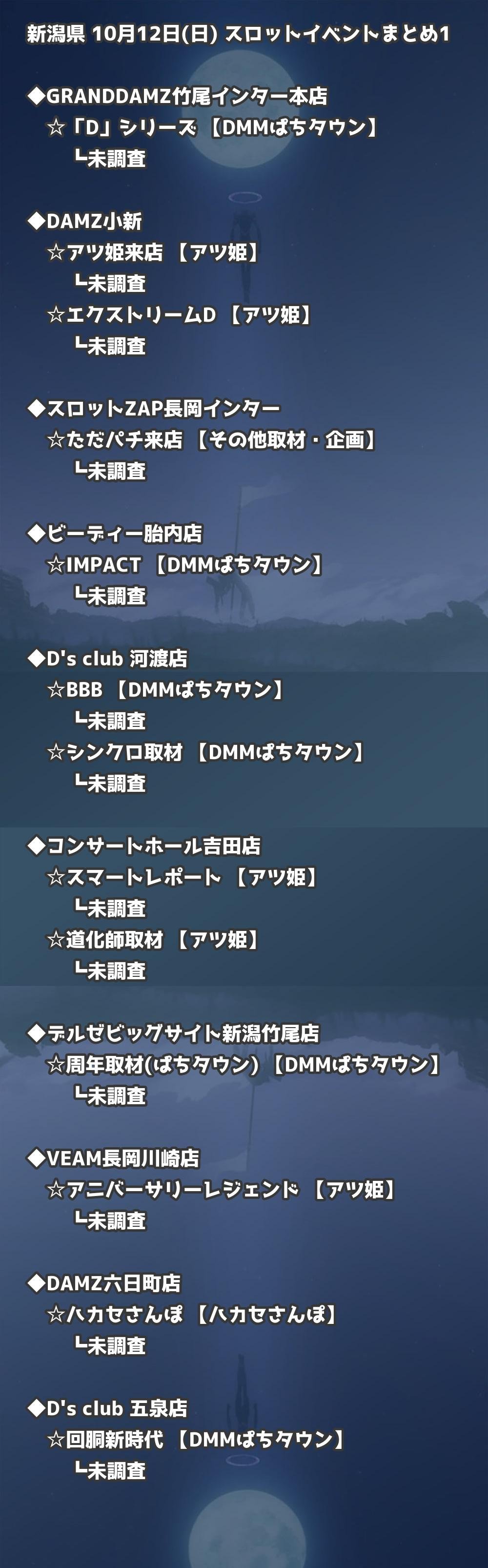 📊 新潟県 10月12日(日) 勝てるパチンコ・スロット取材店舗一覧|おすすめ順