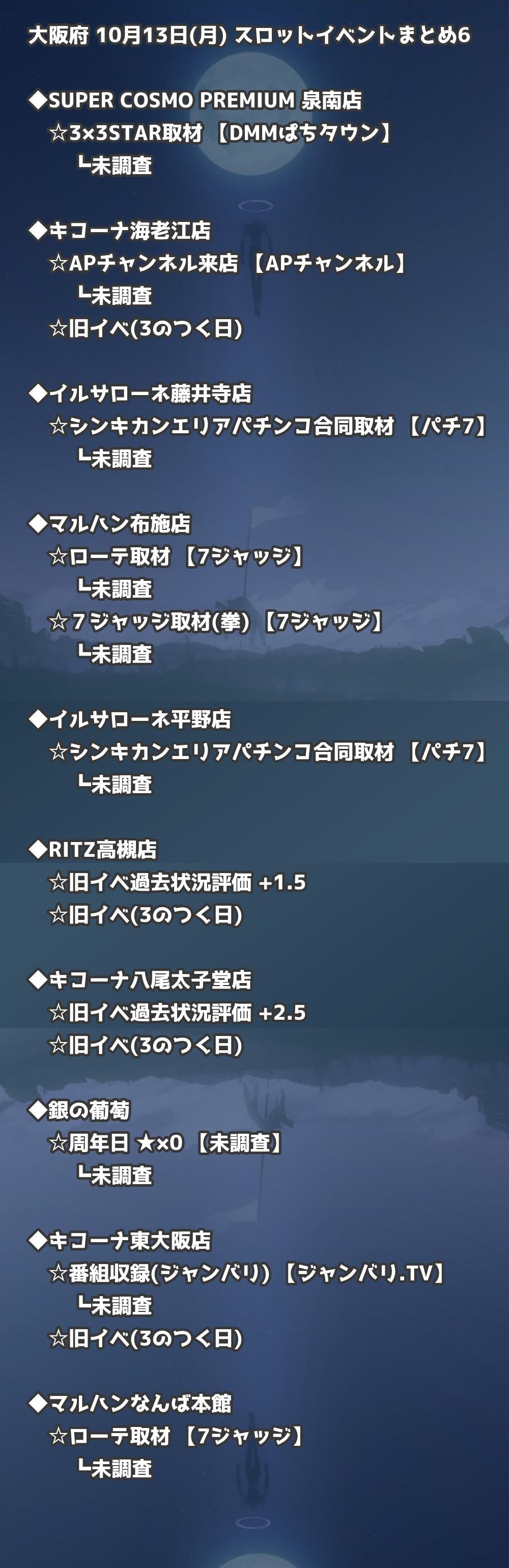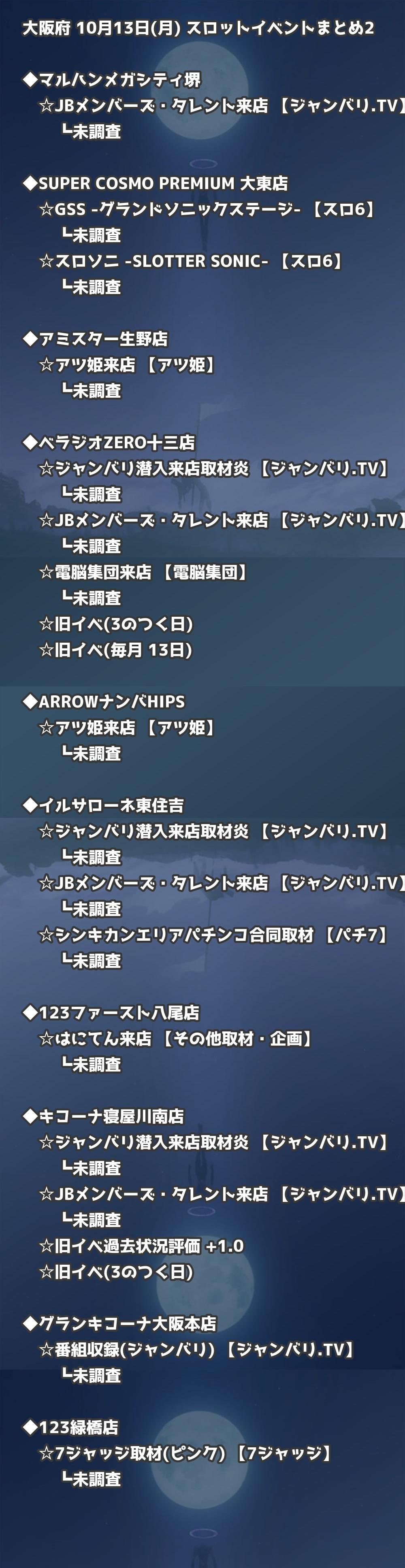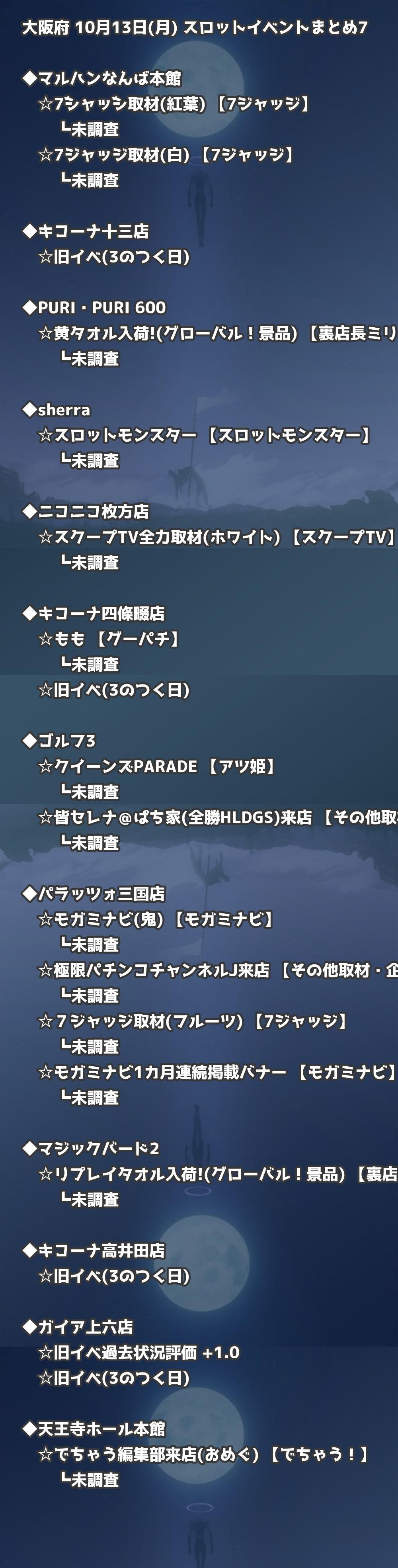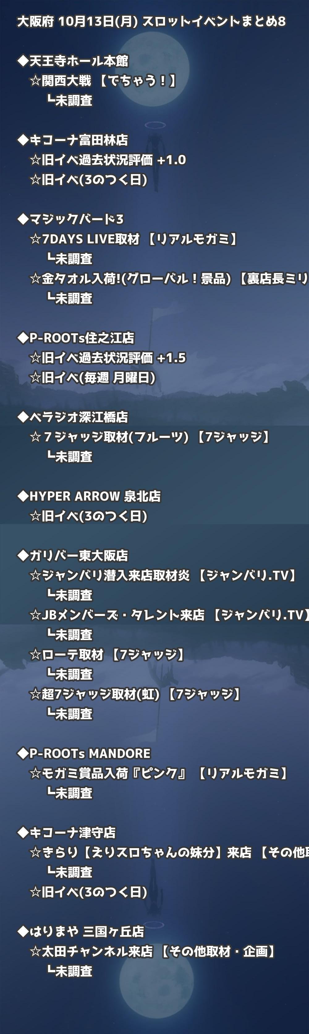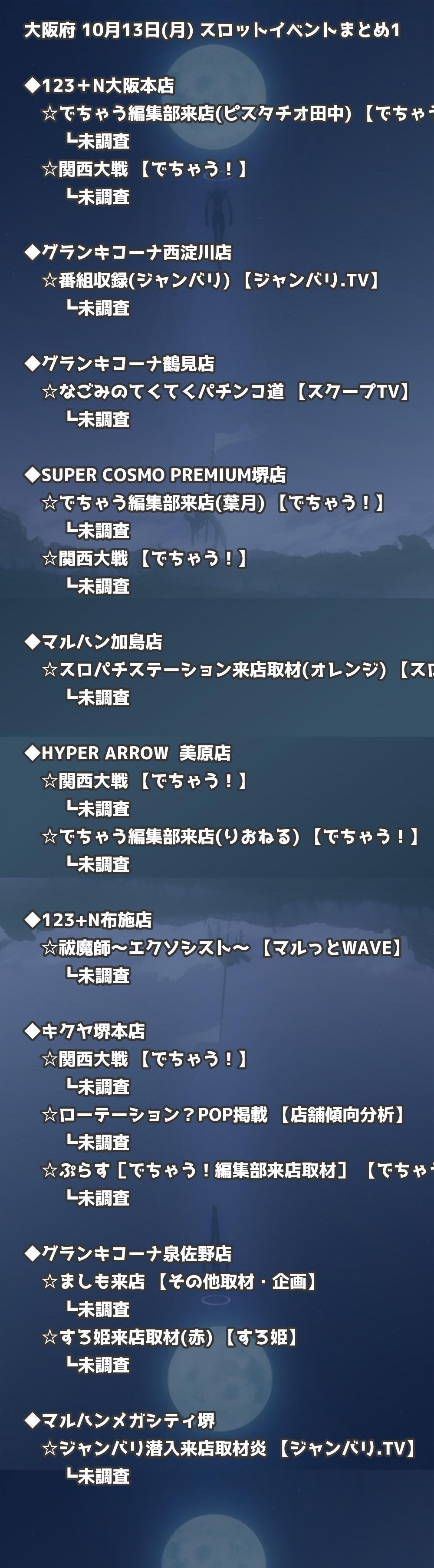 📊 大阪府 10月13日(月) 勝てるパチンコ・スロット取材店舗一覧|おすすめ順