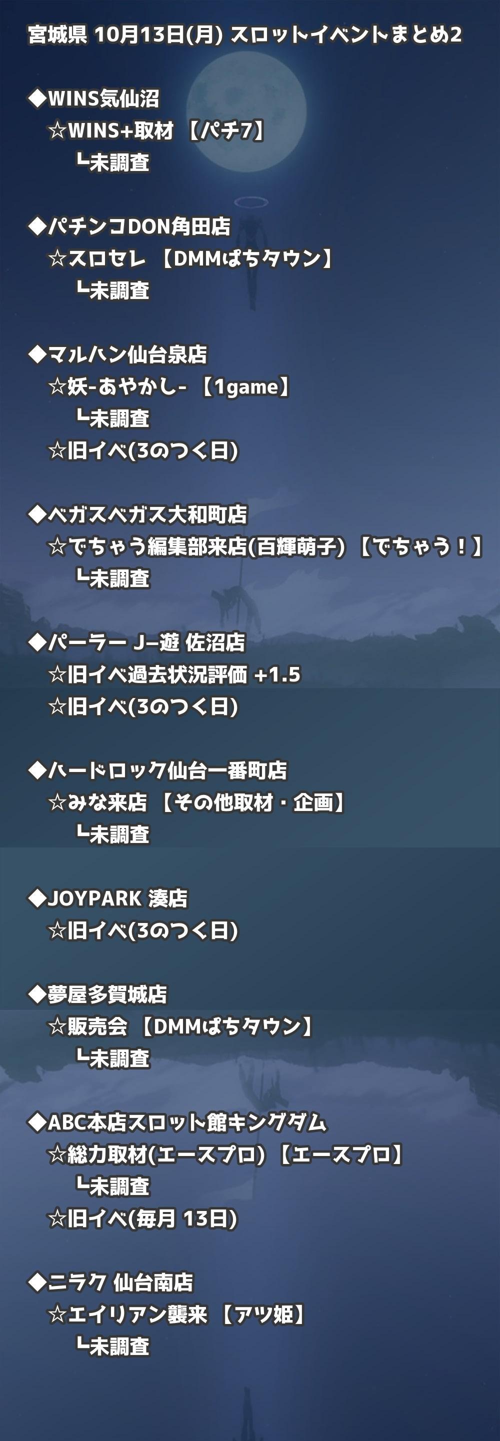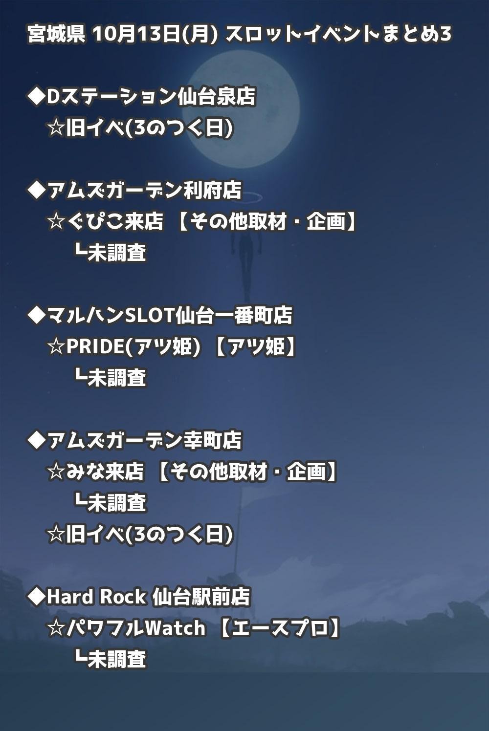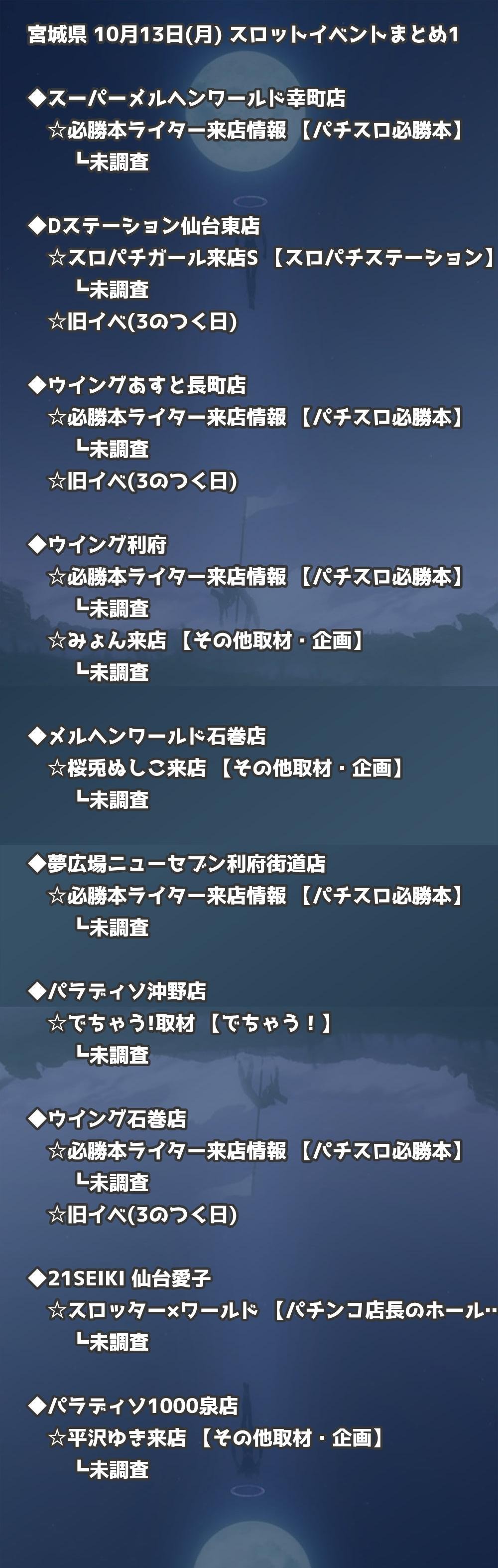 📊 宮城県 10月13日(月) 勝てるパチンコ・スロット取材店舗一覧|おすすめ順