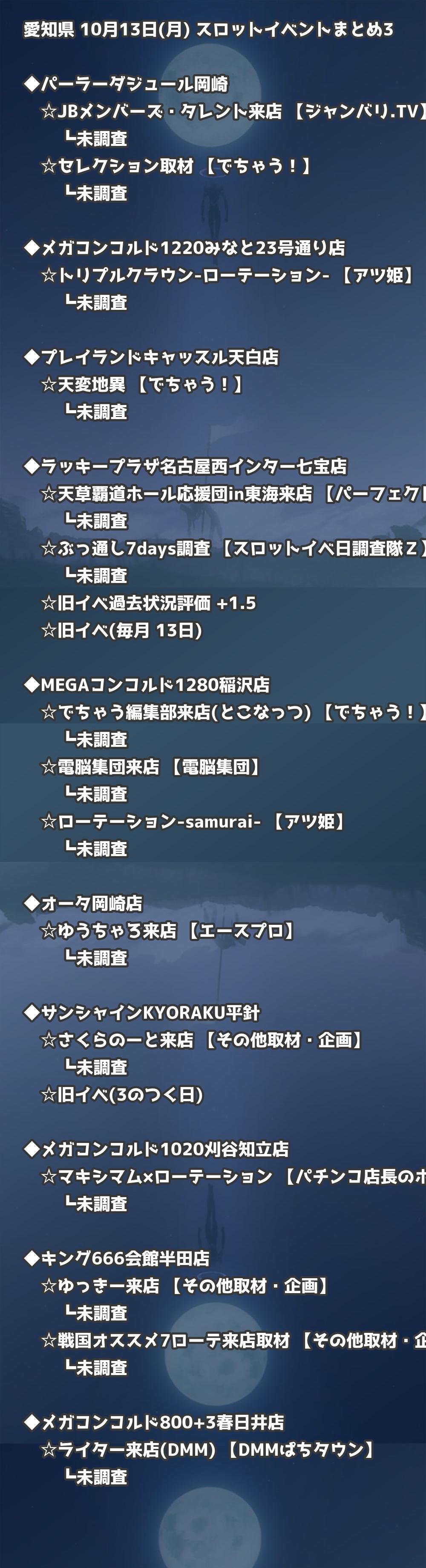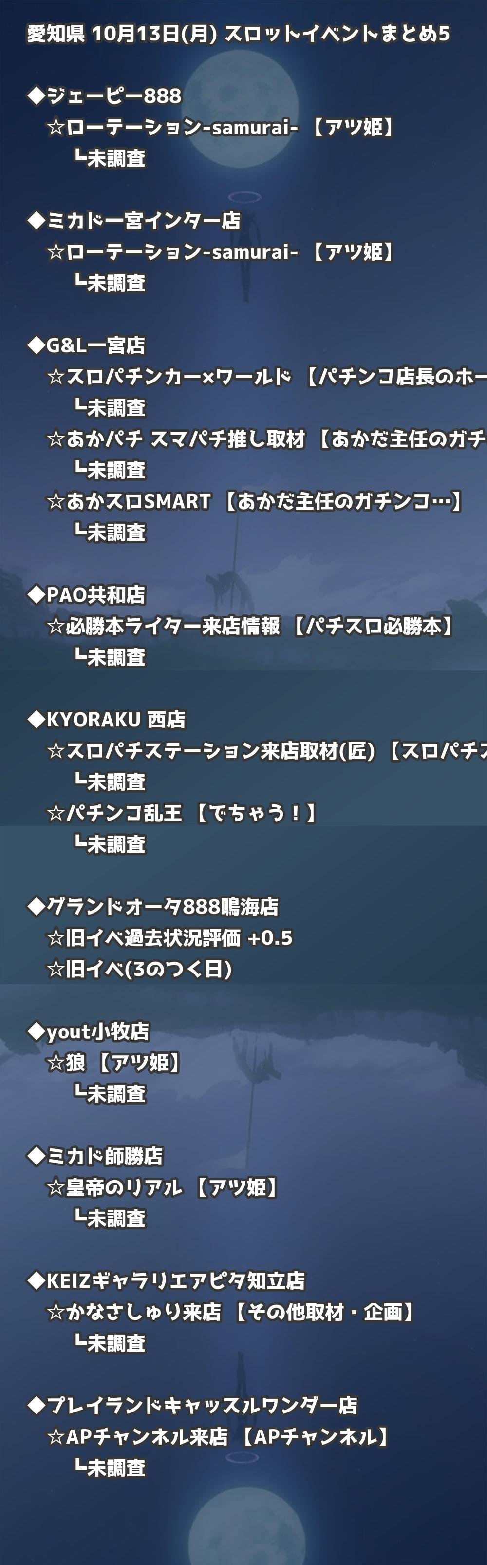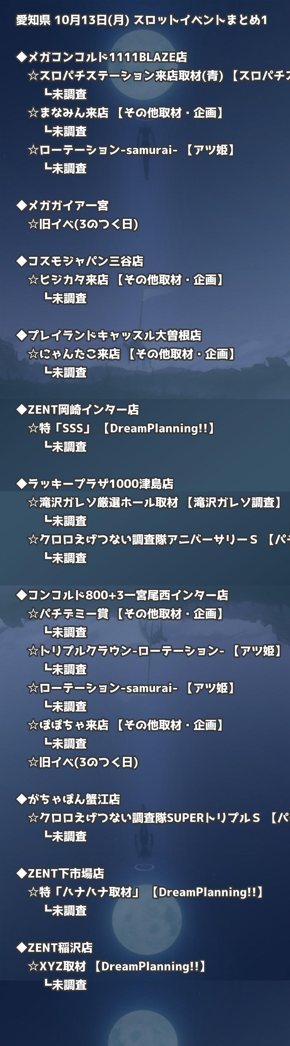 📊 愛知県 10月13日(月) 勝てるパチンコ・スロット取材店舗一覧|おすすめ順