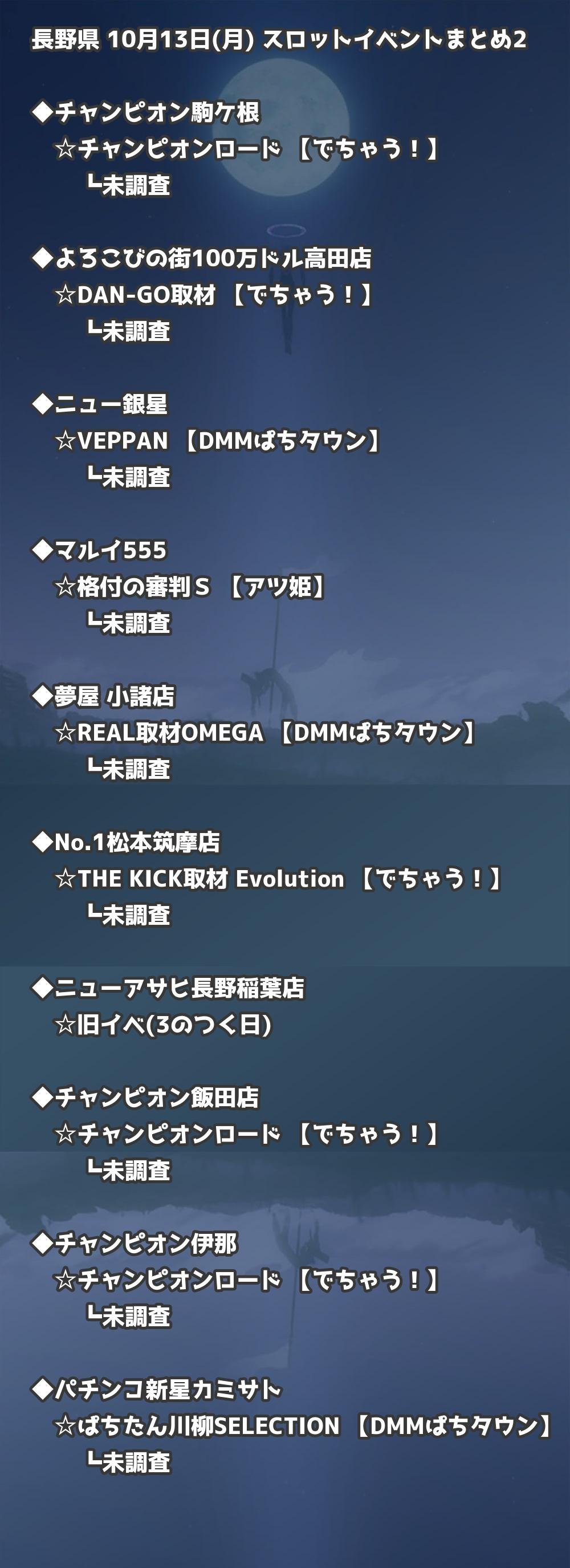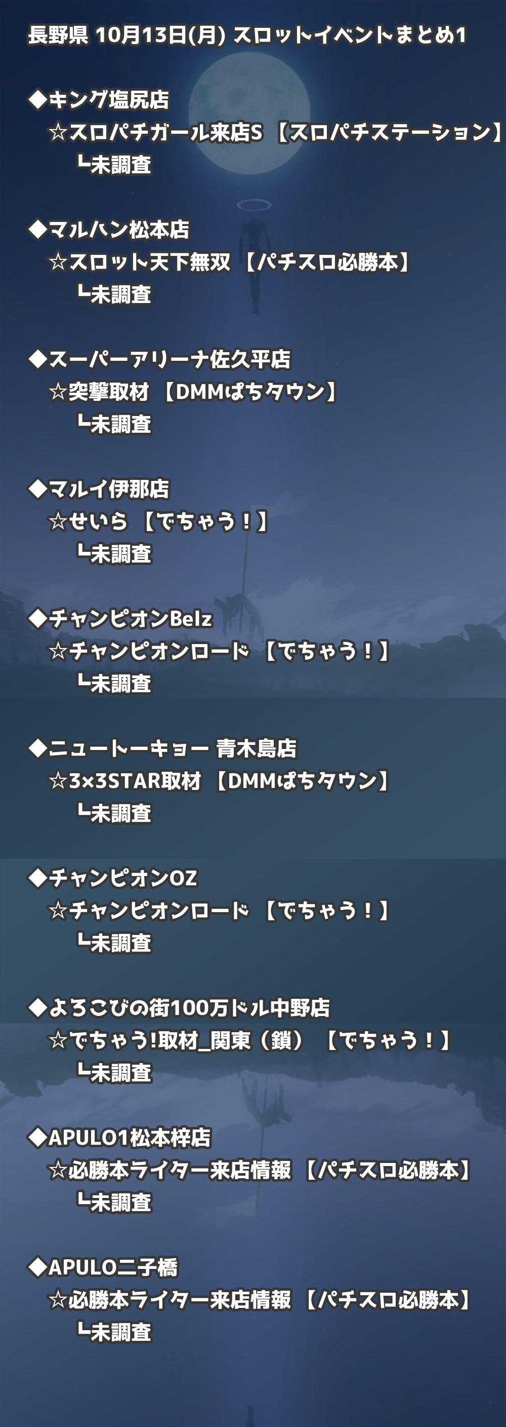 📊 長野県 10月13日(月) 勝てるパチンコ・スロット取材店舗一覧|おすすめ順