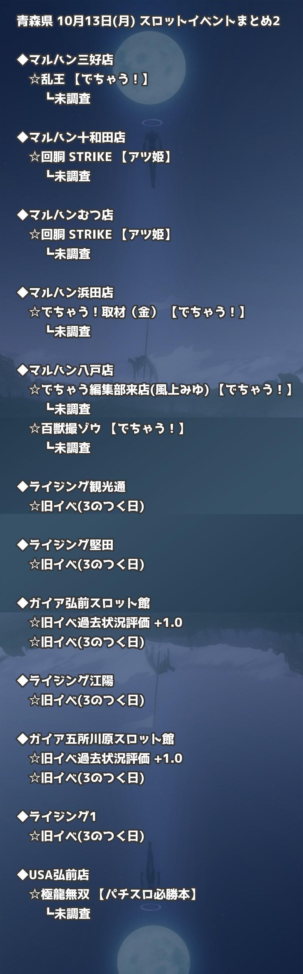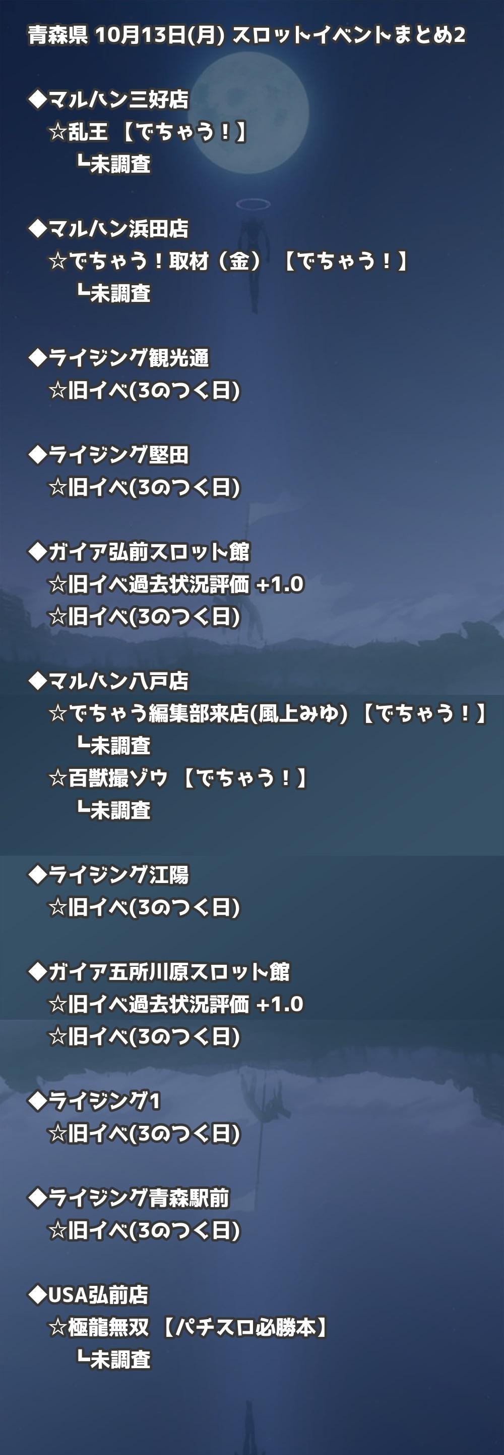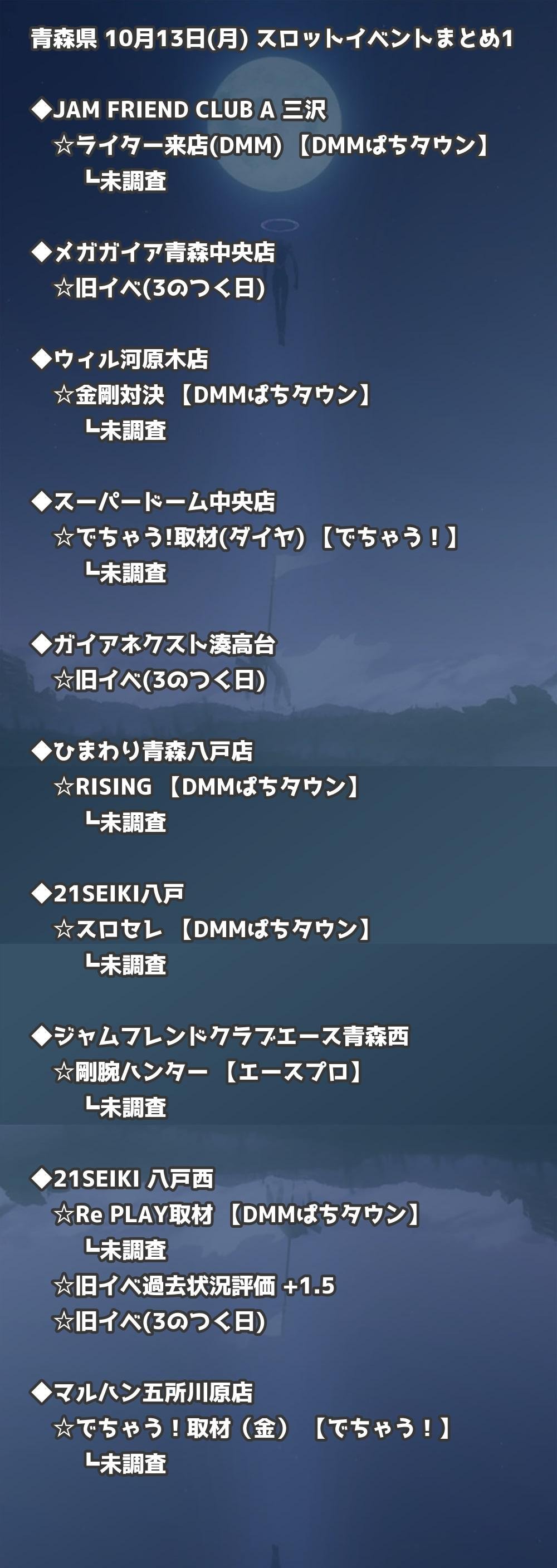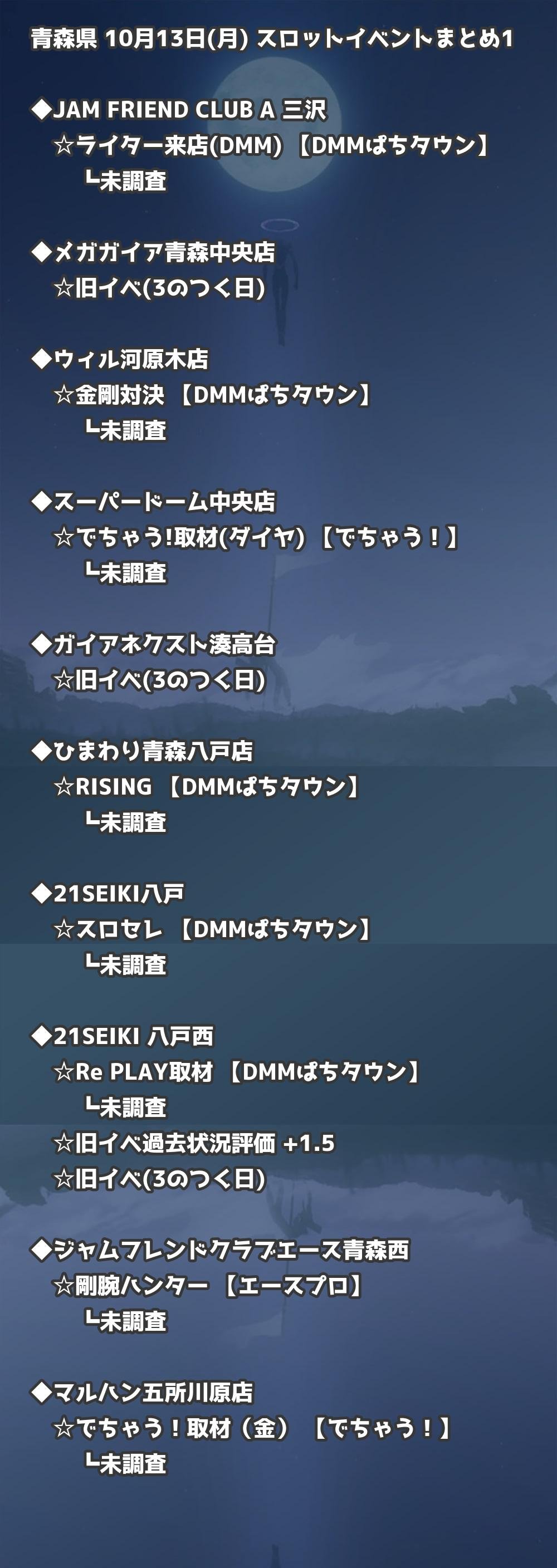 📊 青森県 10月13日(月) 勝てるパチンコ・スロット取材店舗一覧|おすすめ順