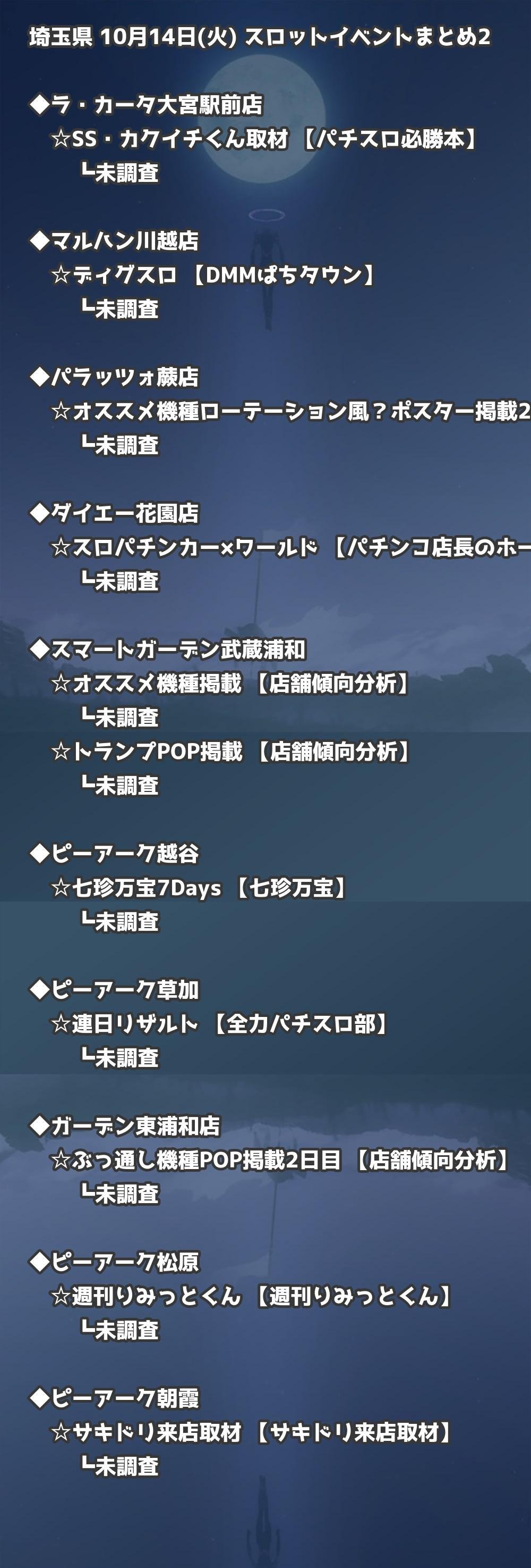 📊 埼玉県 10月14日(火) 勝てるパチンコ・スロット取材店舗一覧|おすすめ順